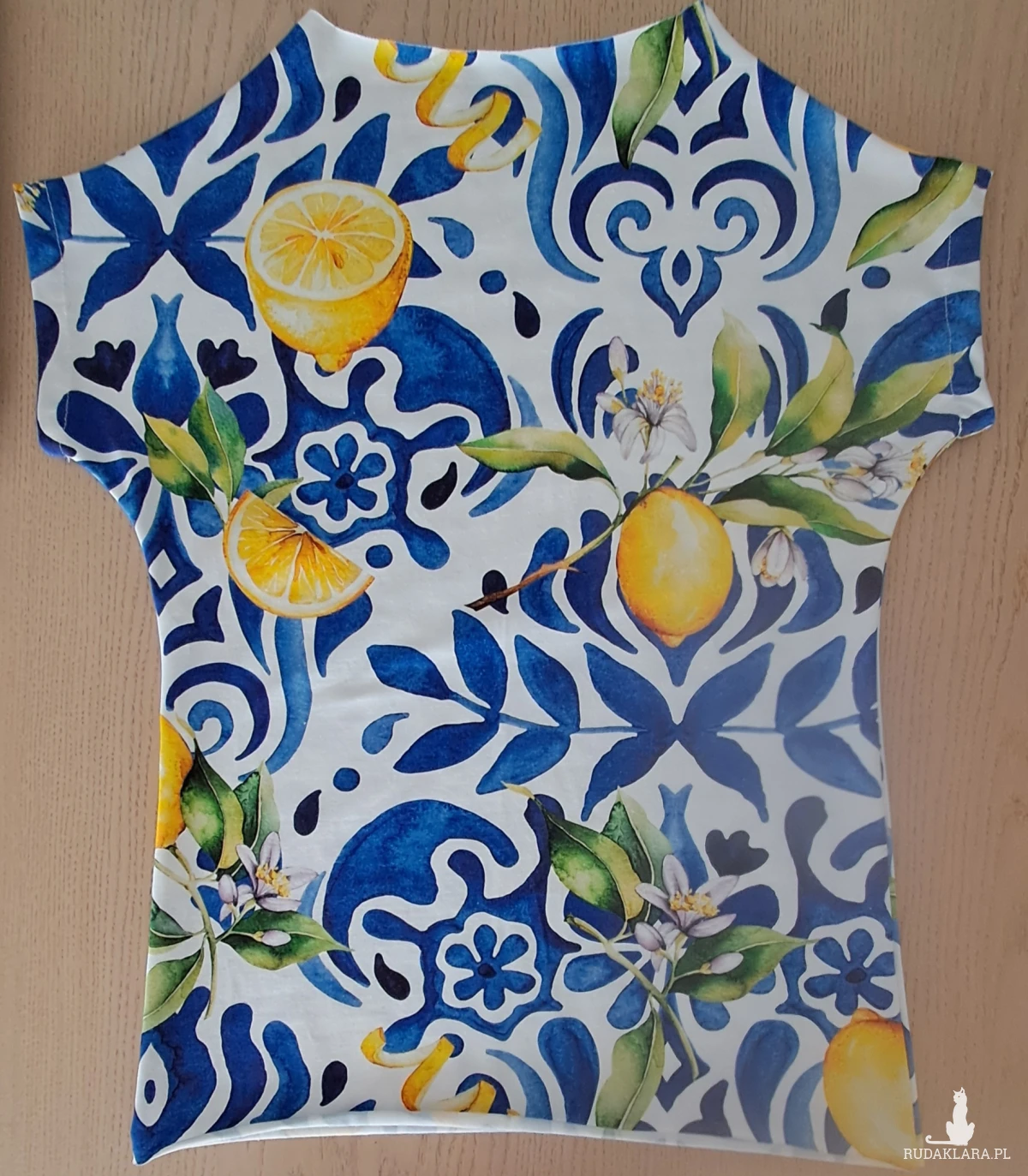 Bluzka jest uszyta z jerseyu bawelnianego. Super kolory, fajna dzianina to podstawa w garderobie. Bluzka ma obwód bioder 94cm, długość 65cm.