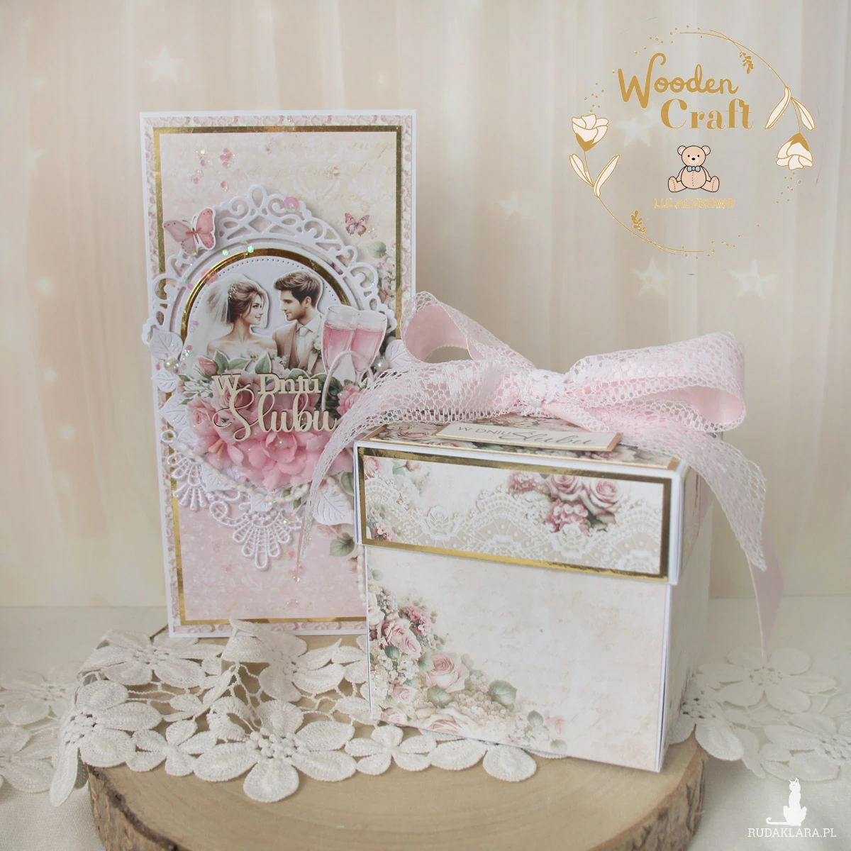 Kartka będzie pięknym i niepowtarzalnym dodatkiem do prezentu dla Państwa Młodych.