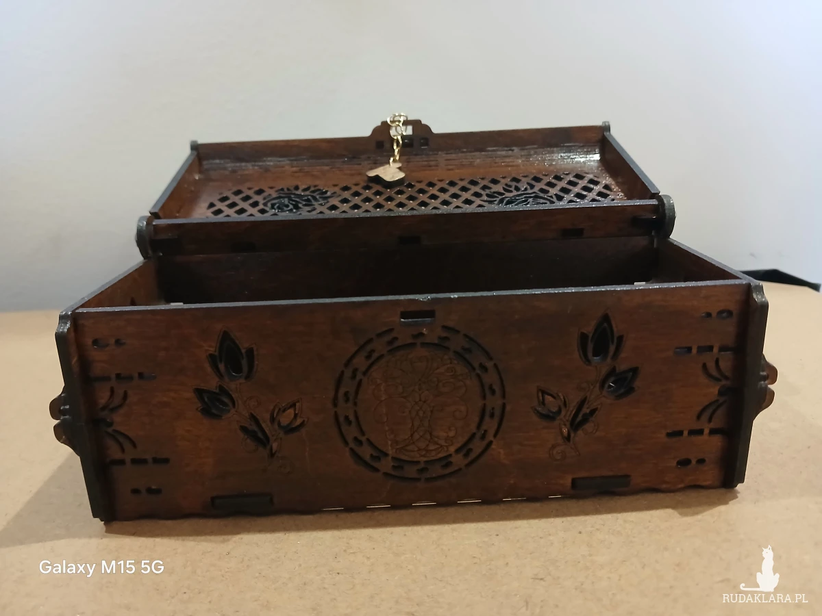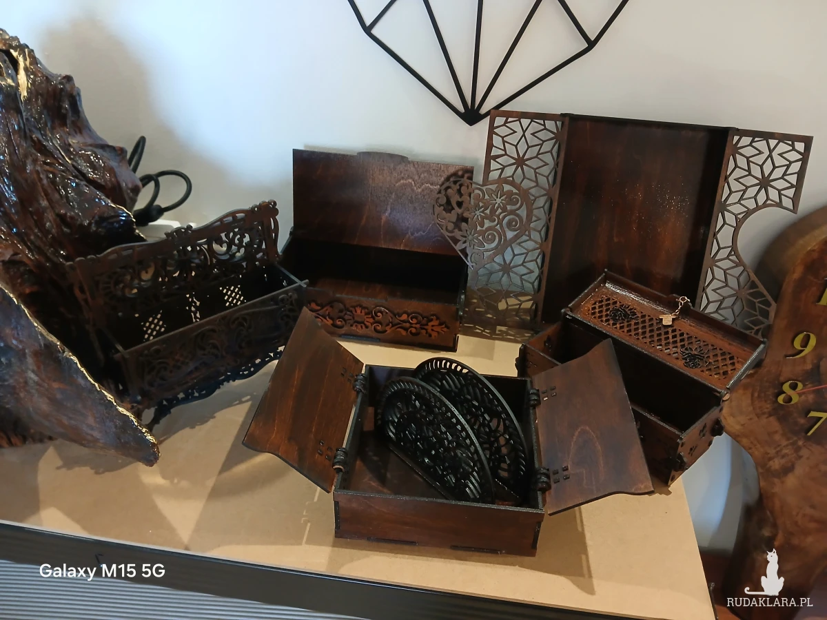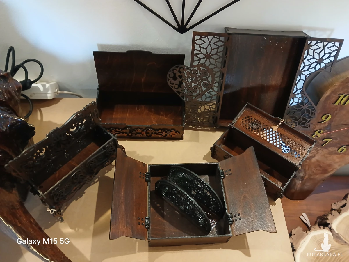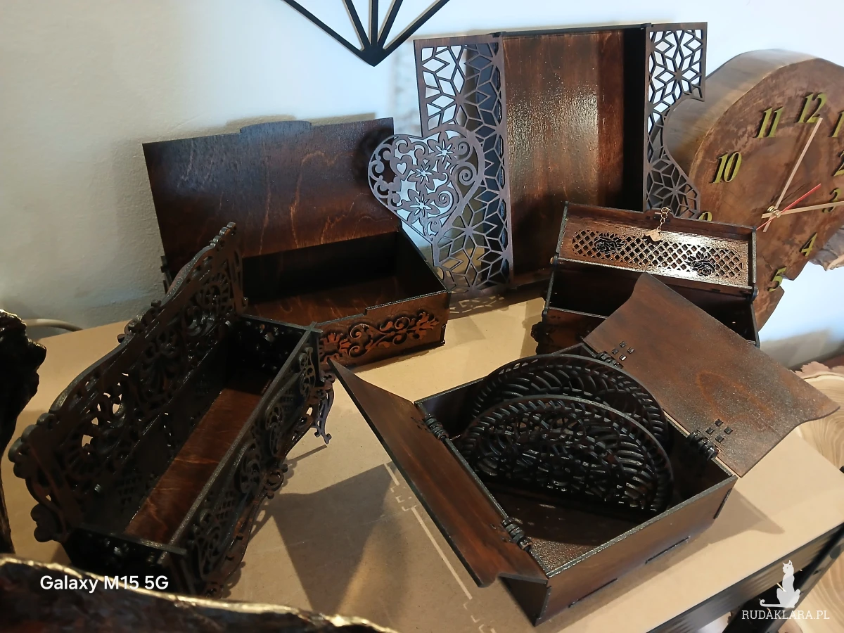 Skrzynki i pudełka na różności , wypalane laserem, różne wymiary różne wzory które możemy ustalić razem, pokrywane bejcą ,lakierem lub nie. Czas wykonania ok.2 dni. Szczegóły możemy ustalić w korespondencji. Wykonuję różne projekty nie tylko takie jak na załączonych zdjęciach. Cena jest zależna od złożonego zamówienia.