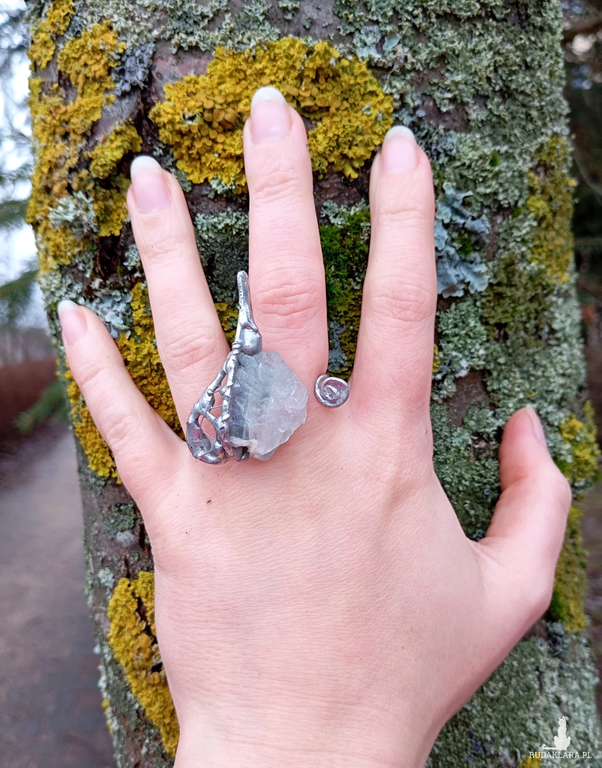 Pierścionek z tęczowym fluorytem Serce, regulowany, oprawa