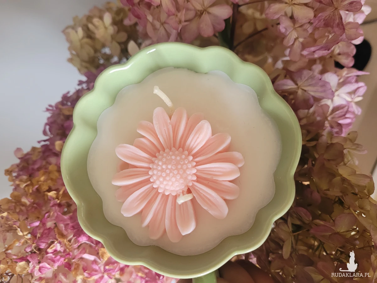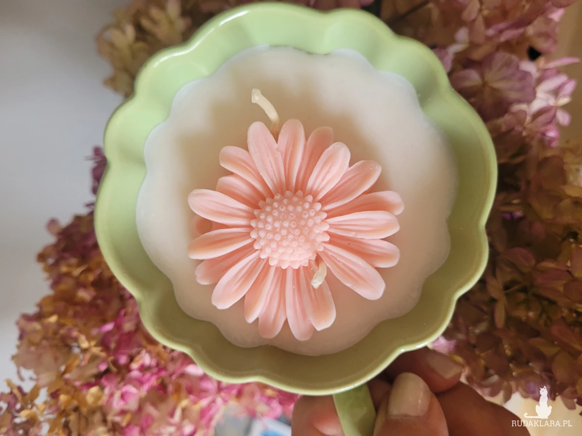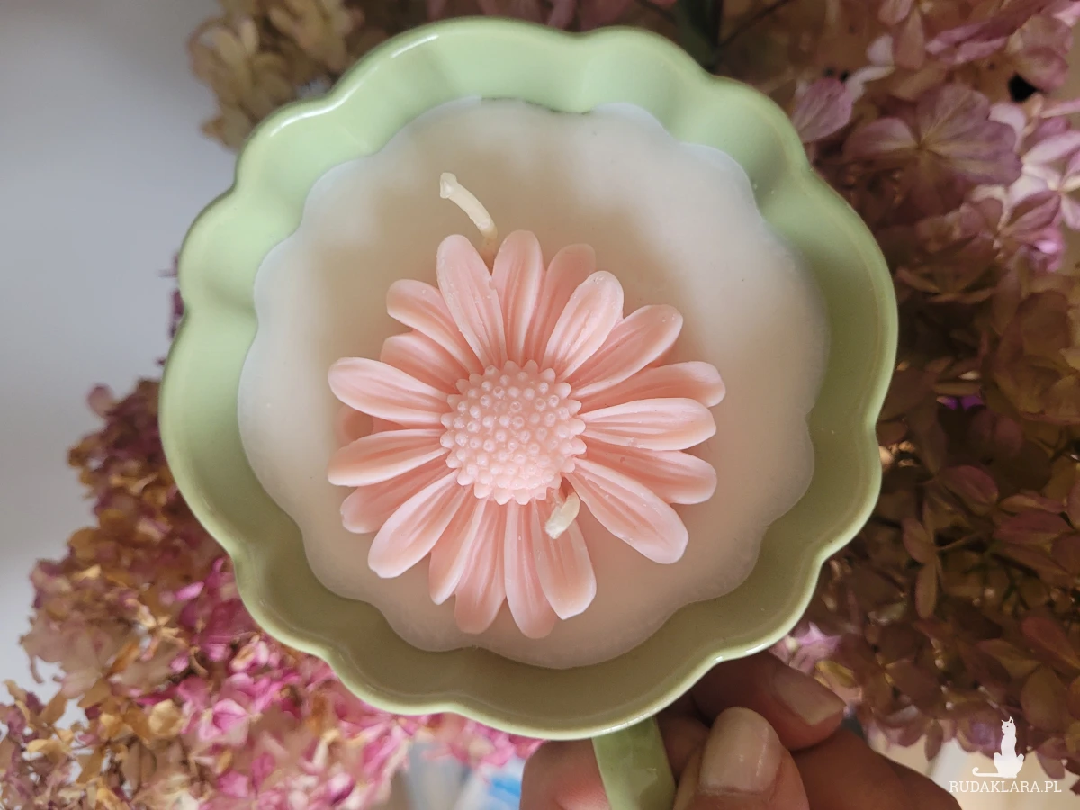 Świeca sojowa handmade- w filiżance z margaretką