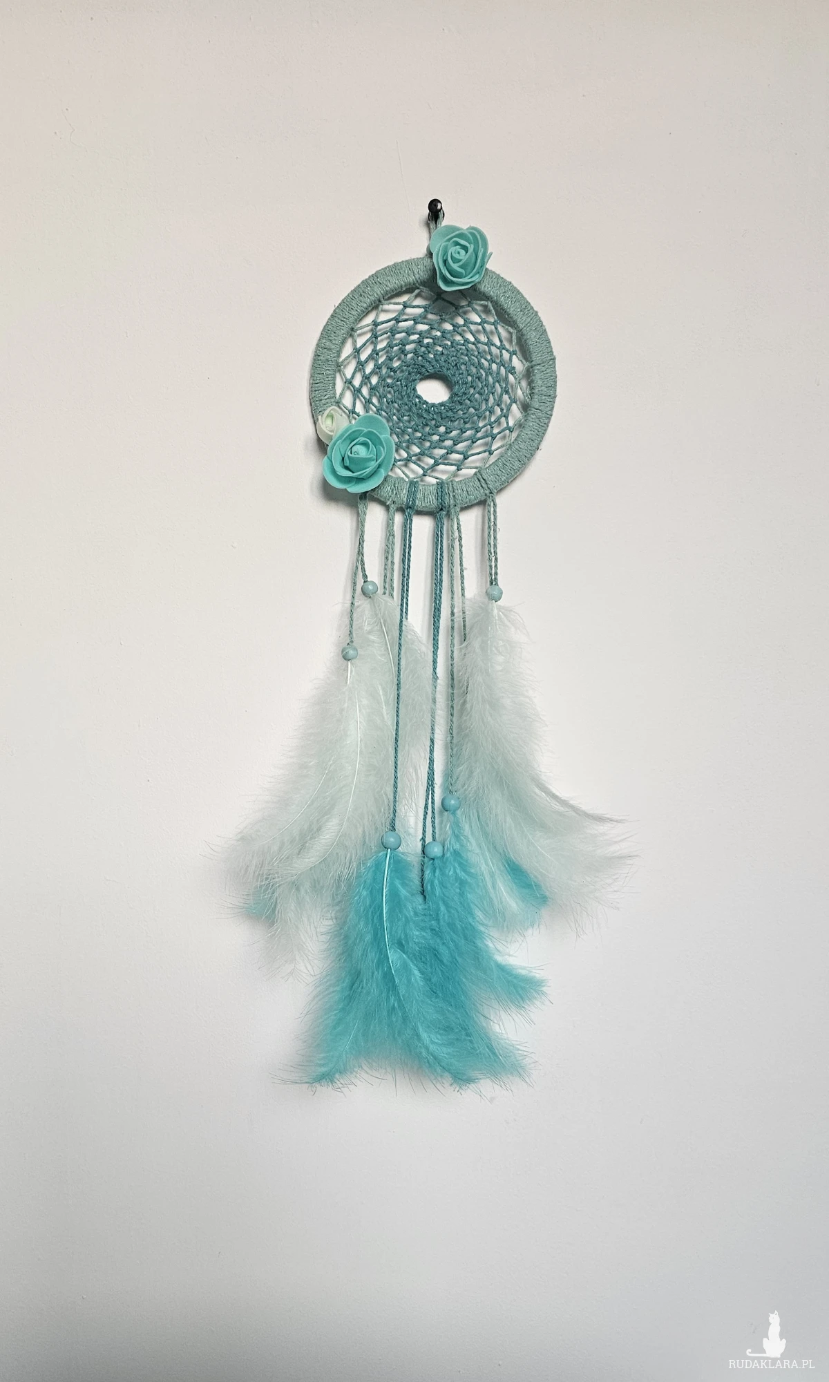 miętowo-turkusowy łapacz snów na obręczy 12 cm