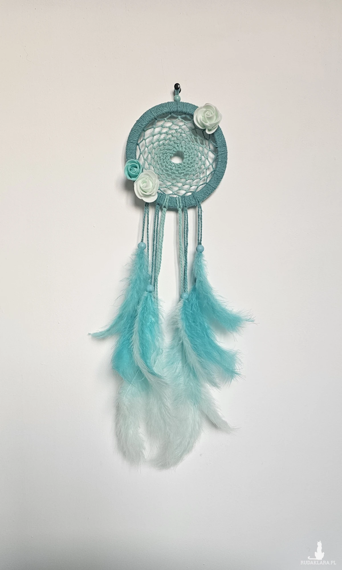 turkusowo-miętowy łapacz snów na obręczy 12 cm