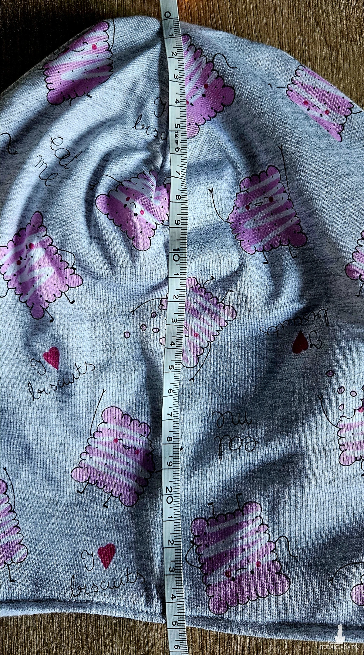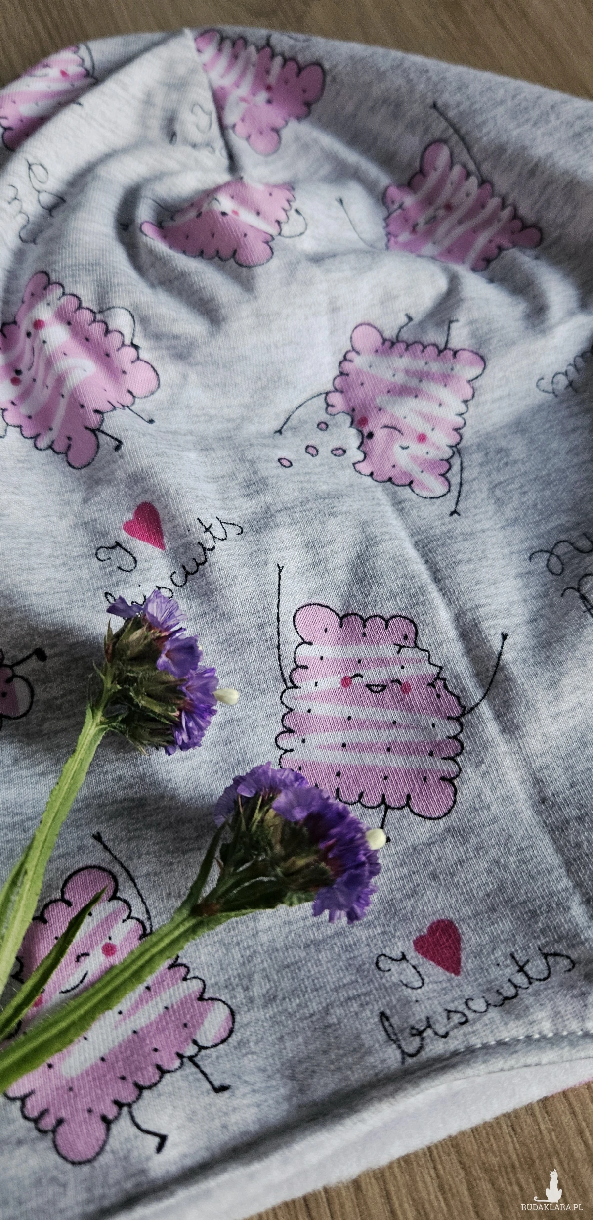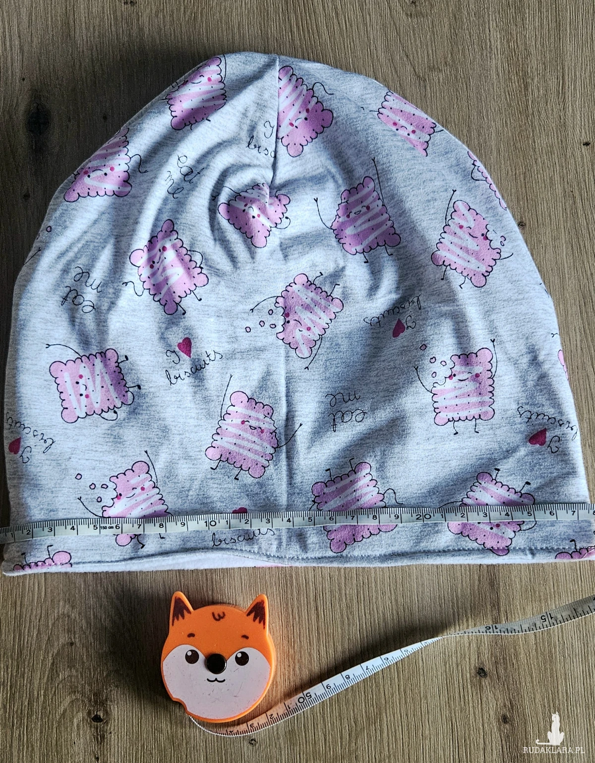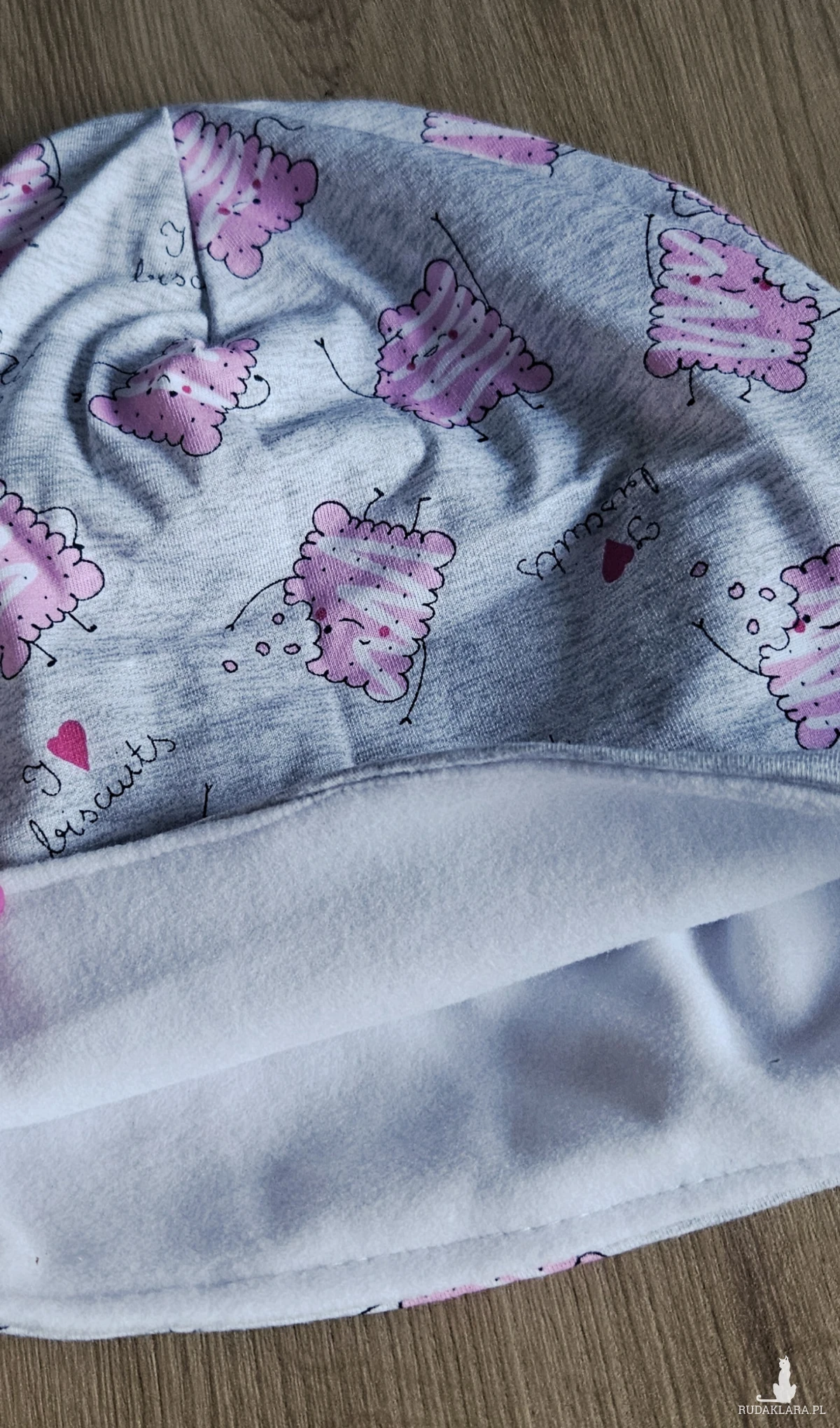 Czapka model: szara czapka z różowymi wesołymi herbatnikami