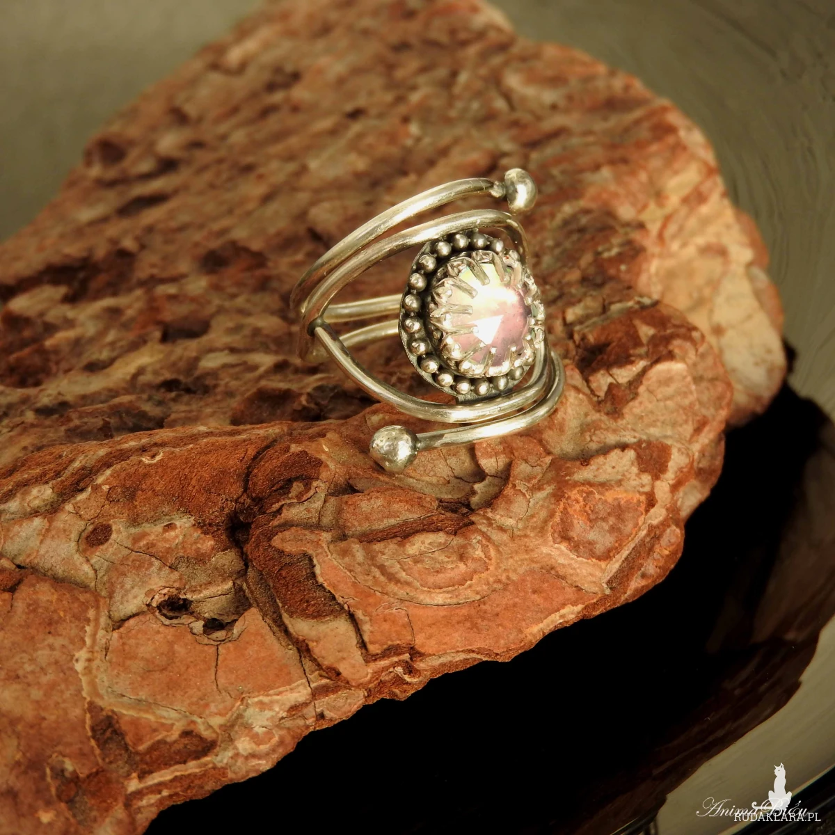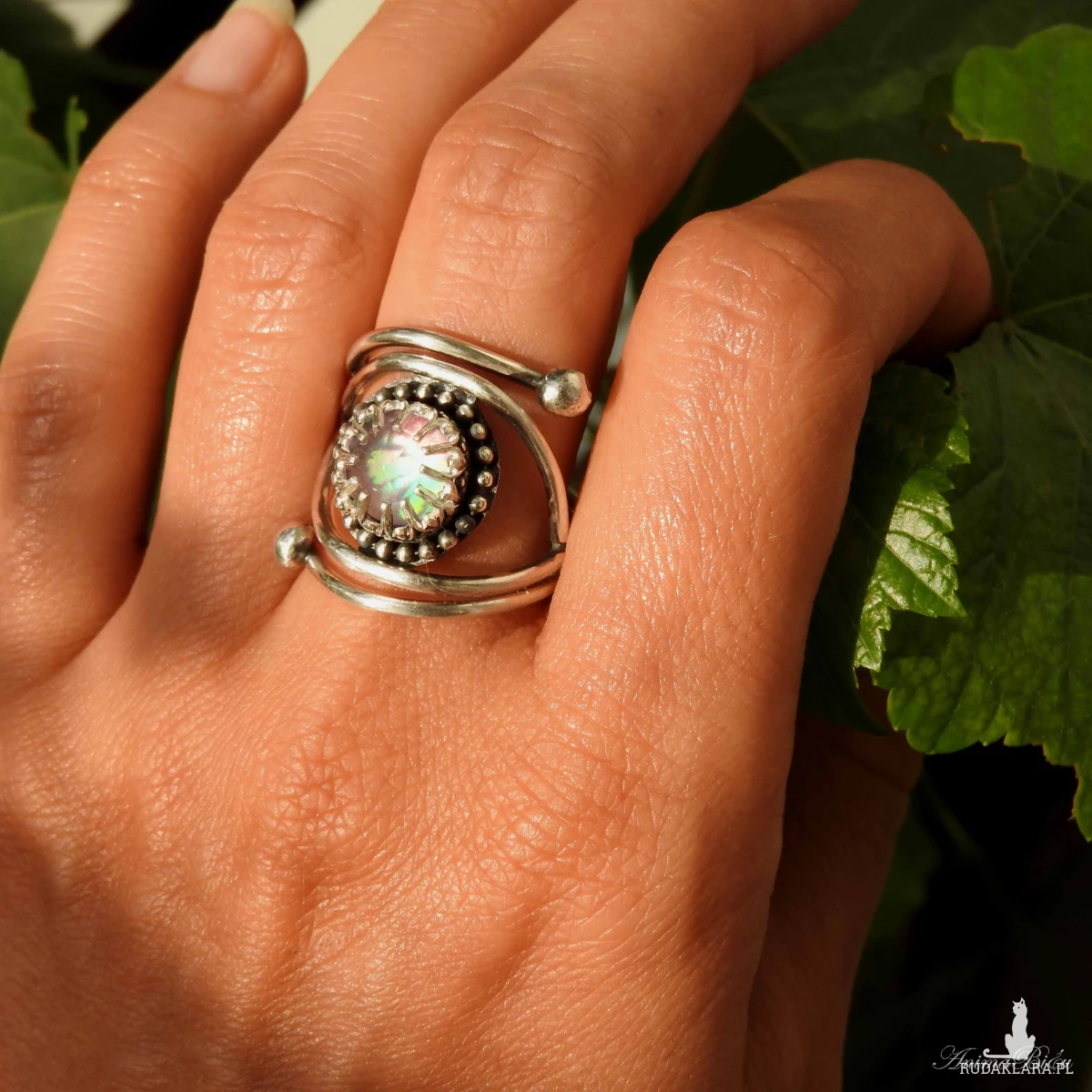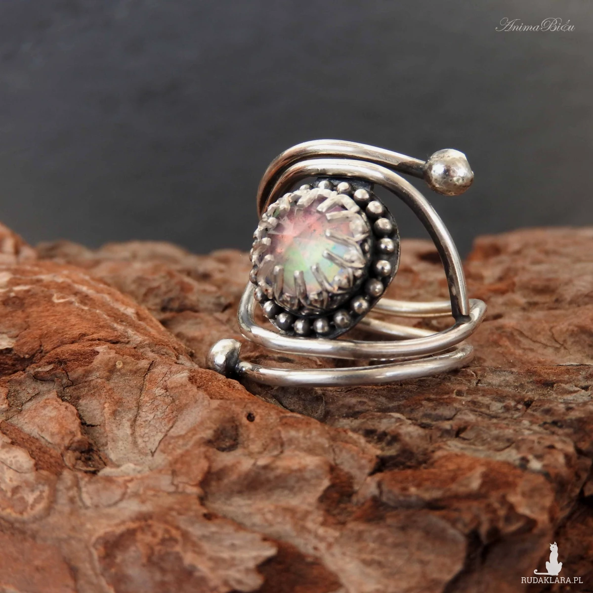 Pierścionek srebrny z opalem aurora. Wykonany od podstaw