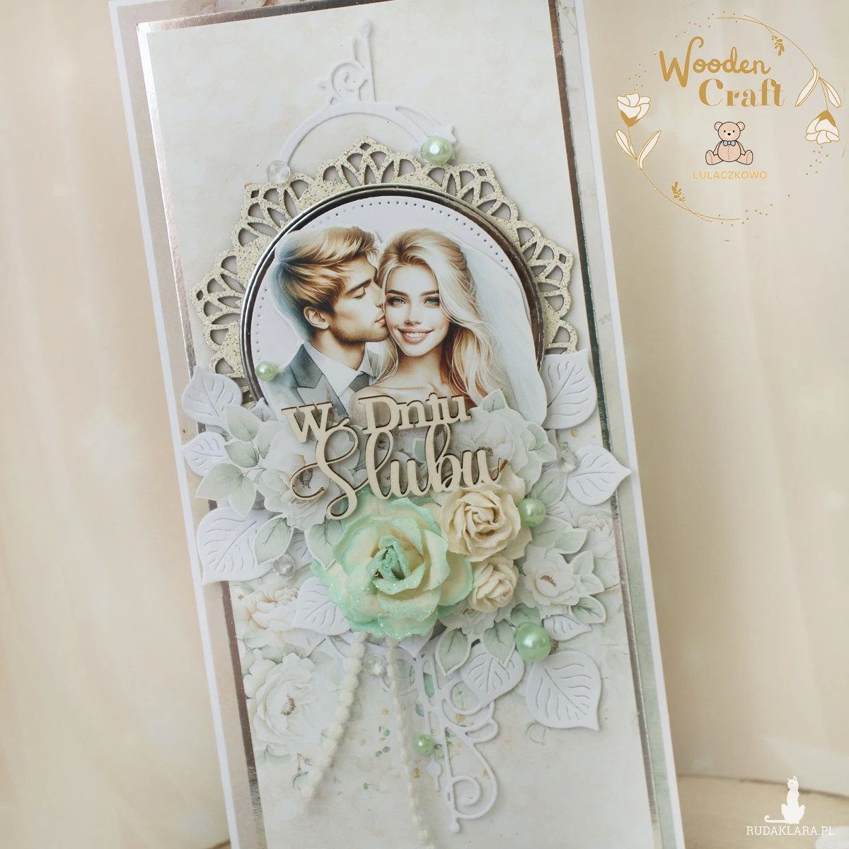Kartka będzie pięknym i niepowtarzalnym dodatkiem do prezentu dla Państwa Młodych.