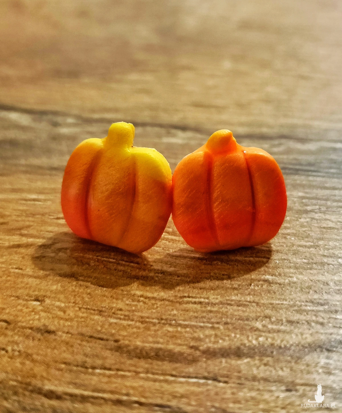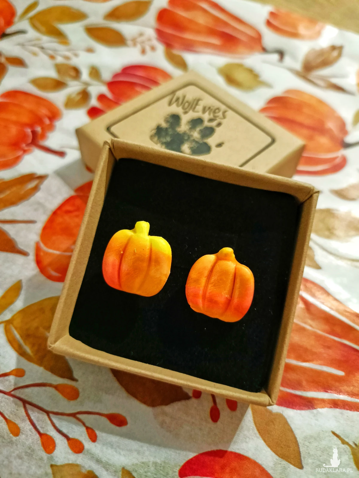 kolczyki jesienne handmade • kolczyki dynie • kolczyki z glinki polimerowej • kolczyki handmade jesień • kolczyki z żywicą epoksydową • biżuteria handmade prezent • kolczyki perłowe błyszczące • kolczyki pomarańczowe • kolczyki dynie na jesień • rękodzieło biżuteria