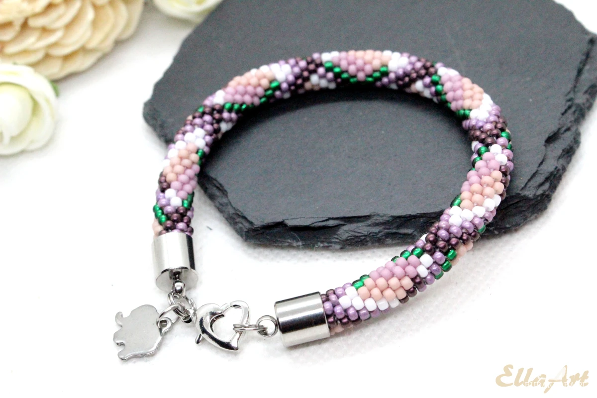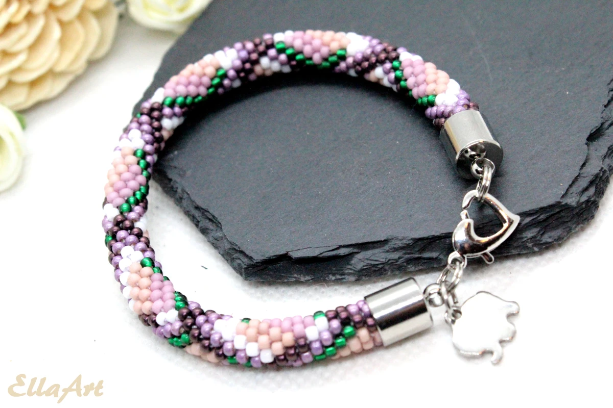 szydełkowo-koralikowego, ze szklanych koralików japońskiej firmy Toho.
