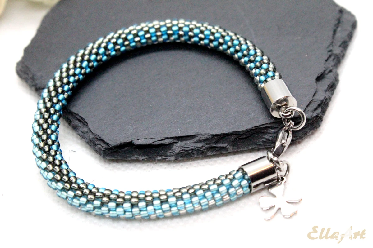 szydełkowo-koralikowego, ze szklanych koralików japońskiej firmy Toho.