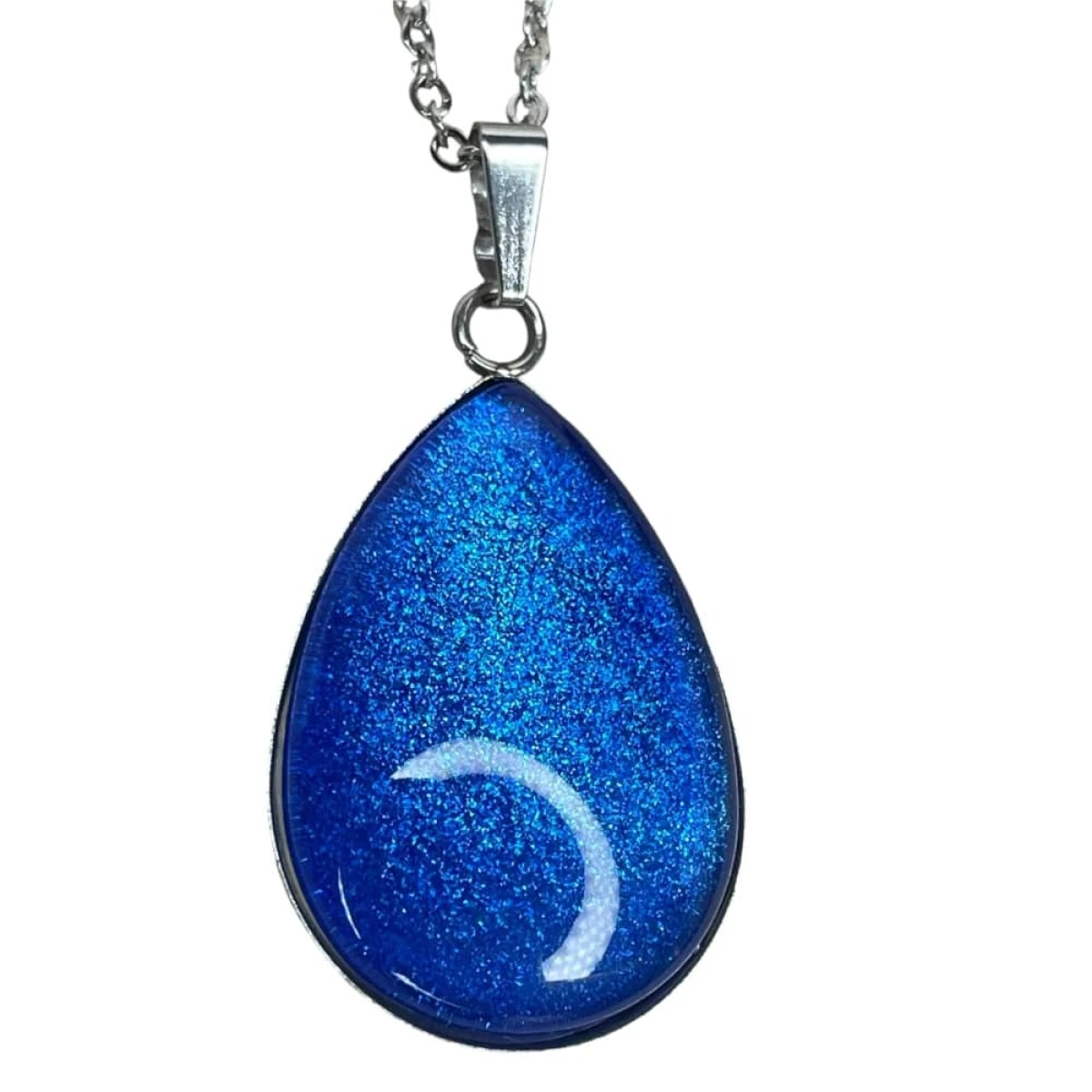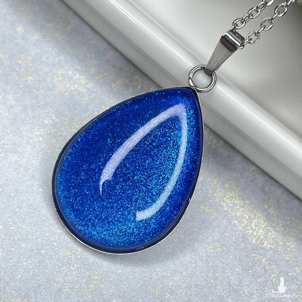Ten wisior jest częścią kolekcji “W blasku perłowego księżyca”. Wisior wykonany jest z ręcznie malowanego kaboszonu umieszczonego w bazie ze stali szlachetnej. Szklany element zachwyca subtelnym, opalizującym blaskiem, który jest niczym odbicie księżyca na tafli wody. Wisior mieni się w świetle, dodając elegancji każdej stylizacji. Na życzenie możemy dodać dodatkowy element jak w kolczykach kupionych do kompletu – wspomnij o tym w uwagach do zamówienia.