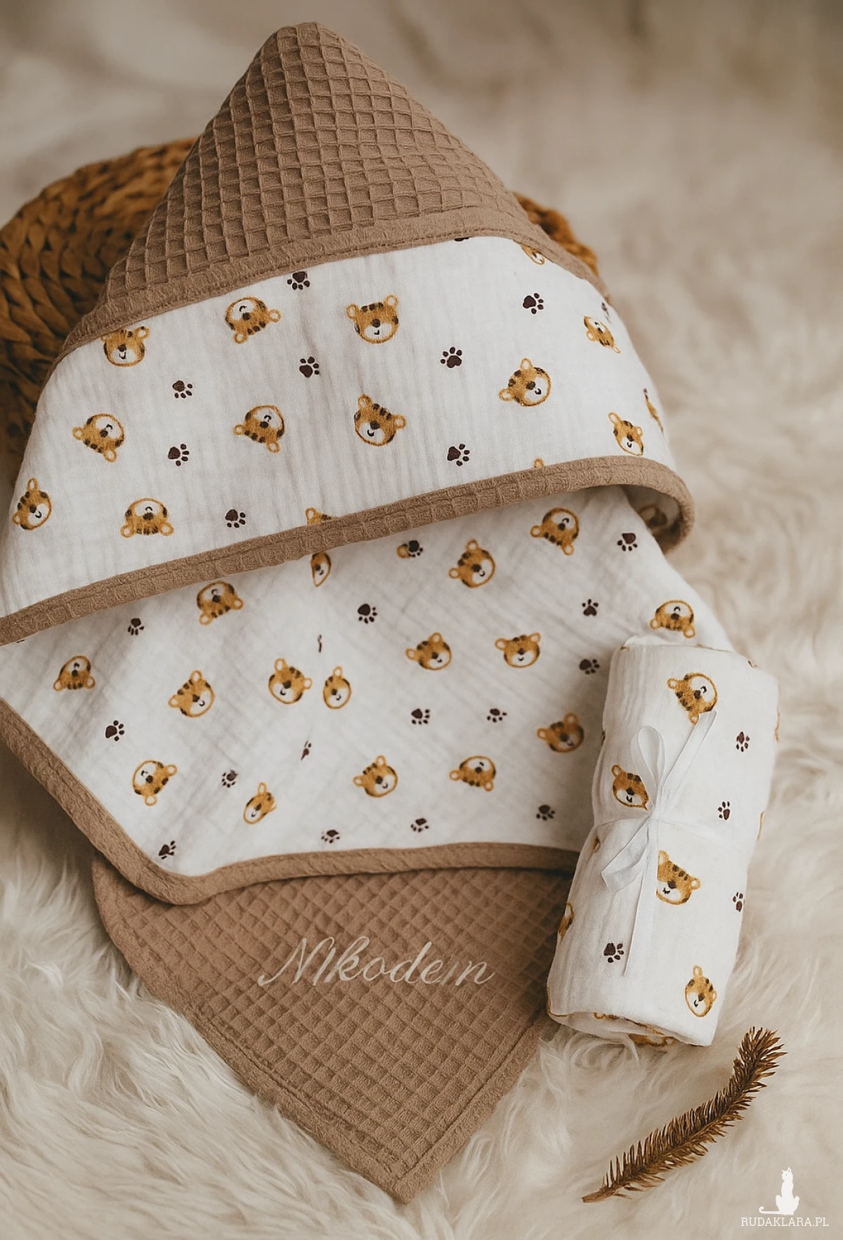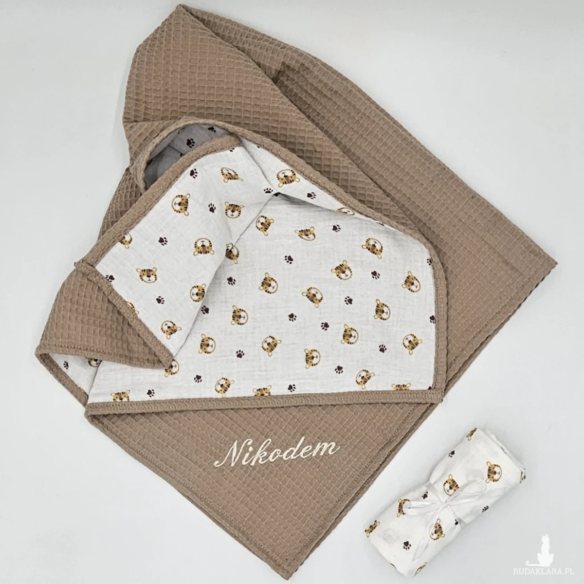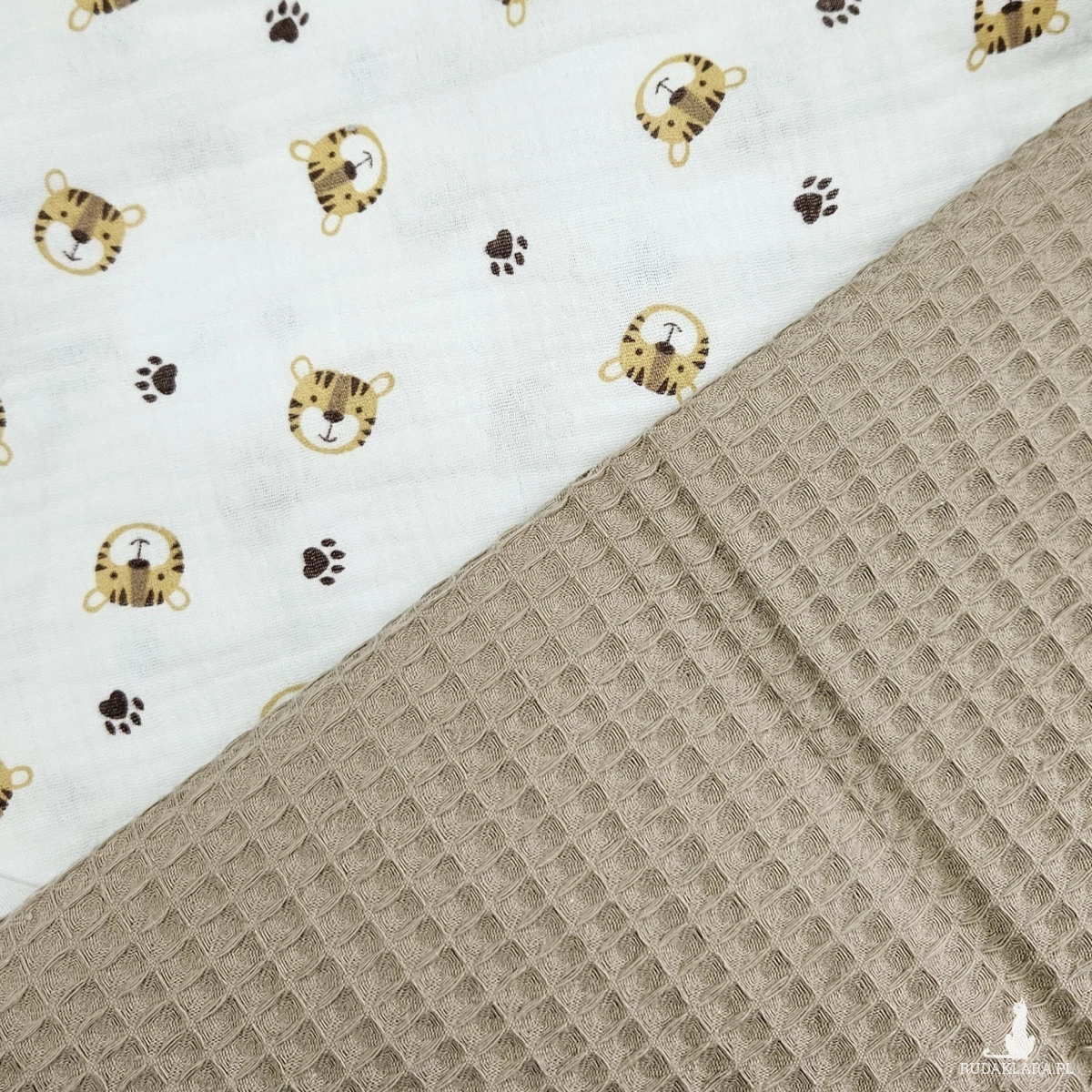 Tkanina wafelkowa oraz muślin jest bezpieczna dla dziecka, utrzymuje ciepło ale nie przegrzewa, jest bardzo chłonna, oddychająca i szybko schnie.
