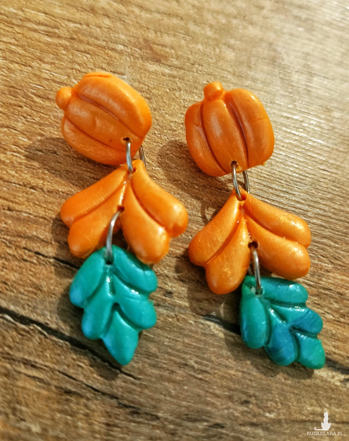 kolczyki jesienne handmade • kolczyki dynie handmade • kolczyki z glinki polimerowej • kolczyki perłowe błyszczące • biżuteria handmade jesień • kolczyki dynie z listkami • kolczyki handmade prezent • kolczyki z żywicą epoksydową • unikatowa biżuteria handmade • kolczyki handmade w pudełeczku