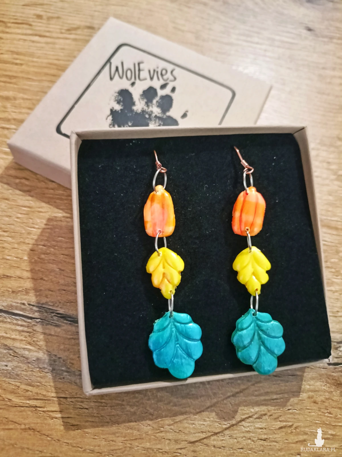 kolczyki jesienne handmade • kolczyki dynie handmade • kolczyki wiszące z glinki polimerowej • kolczyki z żywicą epoksydową • kolczyki pomarańczowe żółte zielone • biżuteria handmade jesień • kolczyki handmade prezent • kolczyki perłowe błyszczące • kolczyki handmade pudełeczko • unikatowa biżuteria handmade