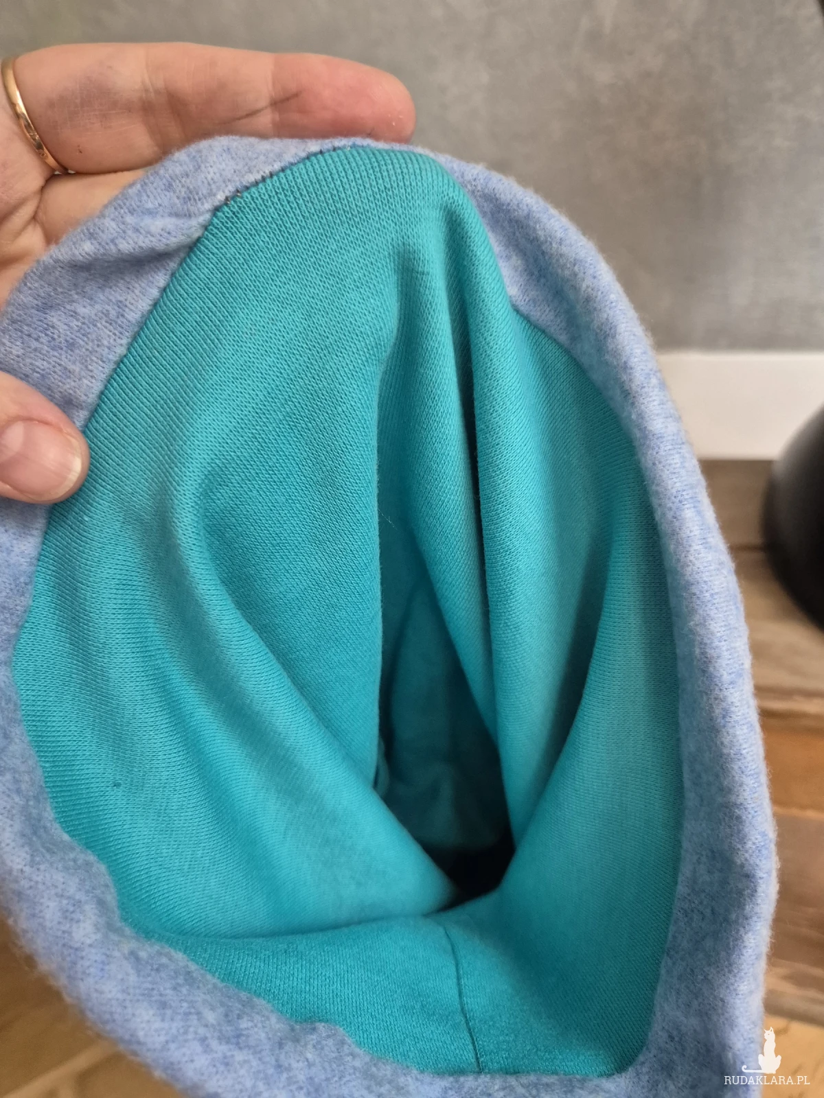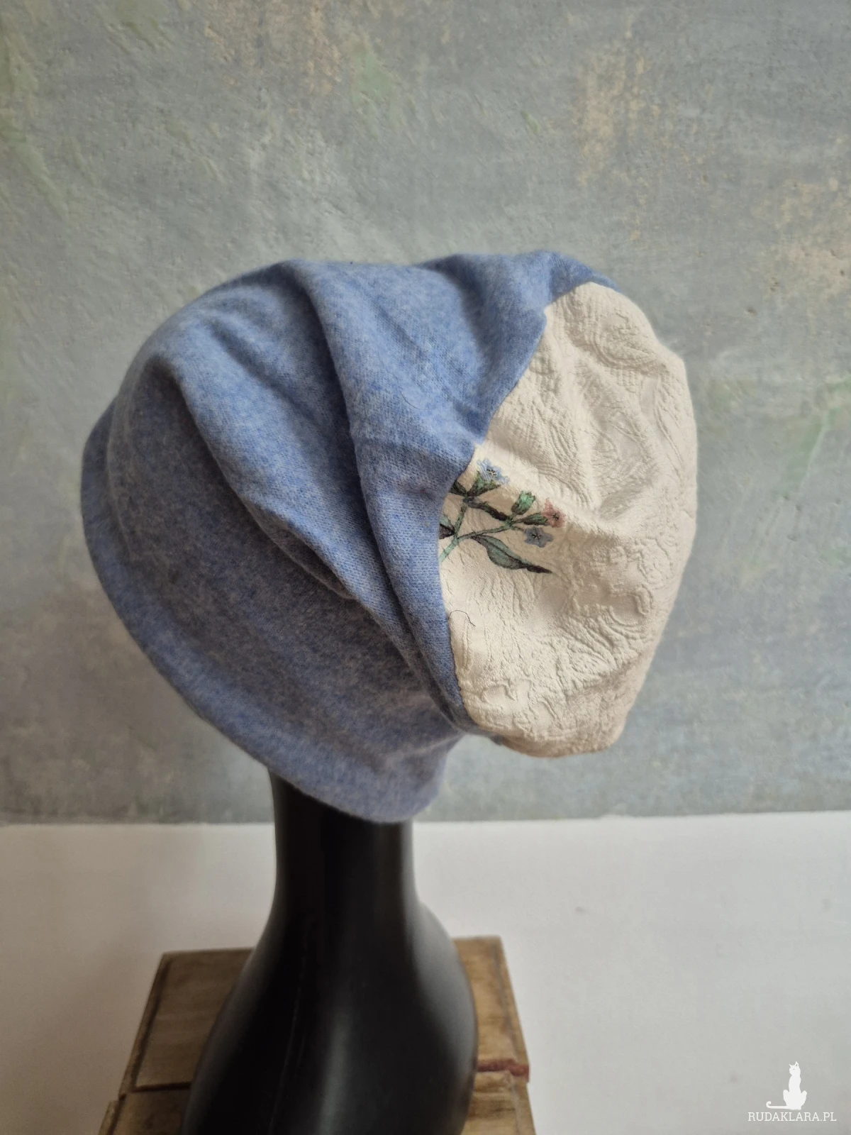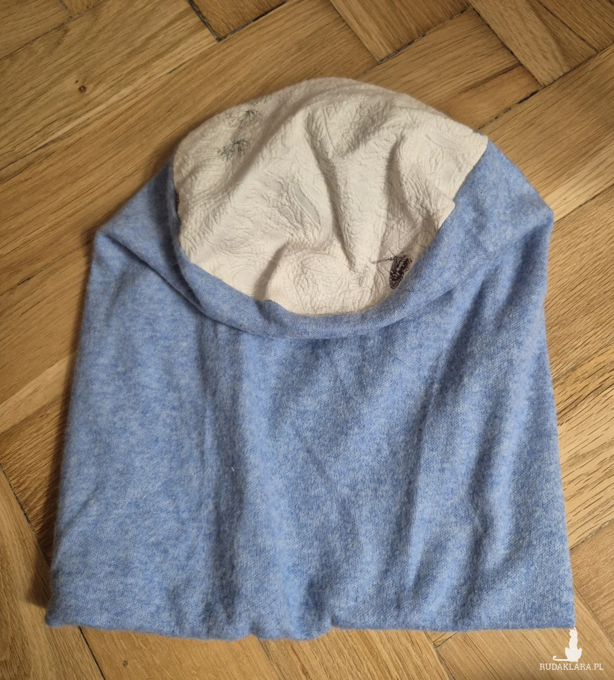 czapka niebieska Pastelowa na podszewce lekko rozciągliwa rozmiar M obwód głowy 56 57 cm damska dobra na codzienne noszenie boks A1