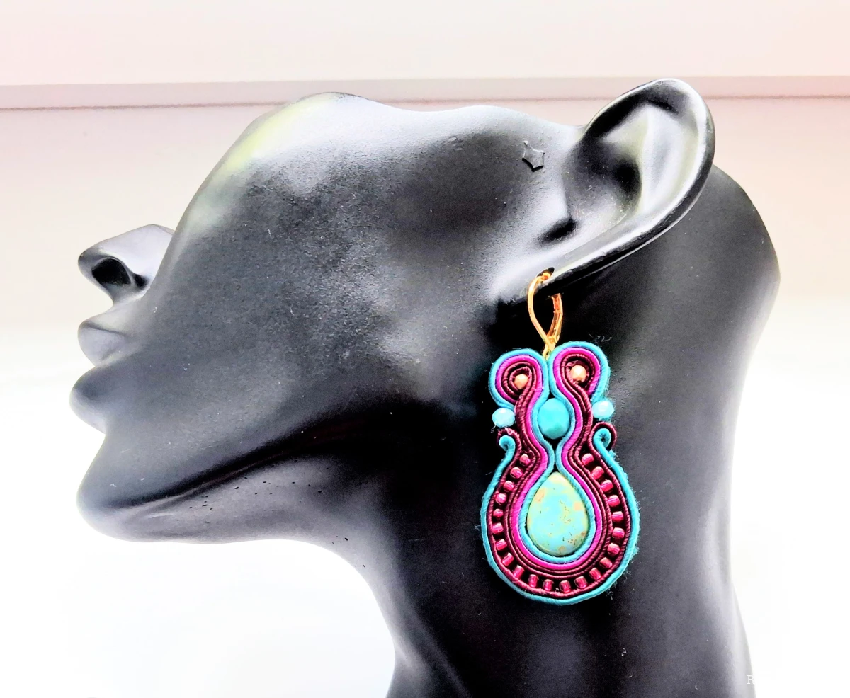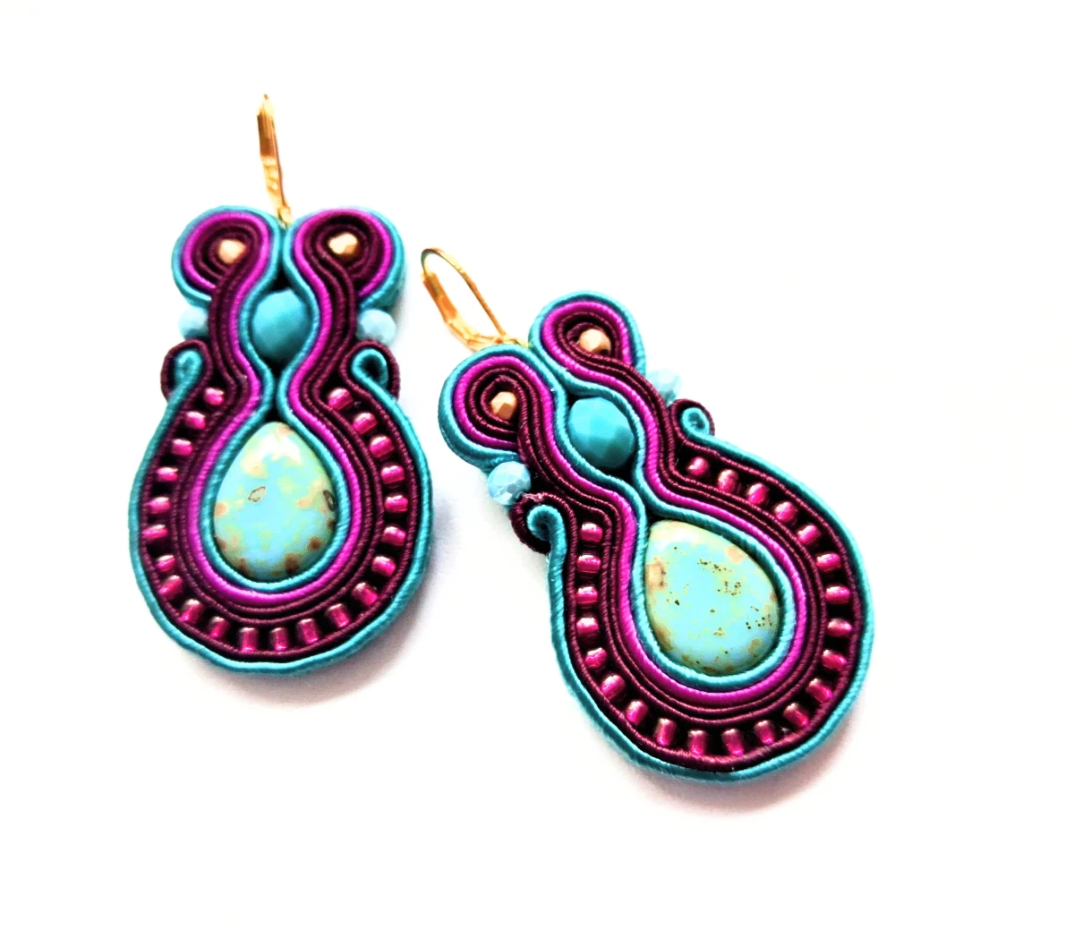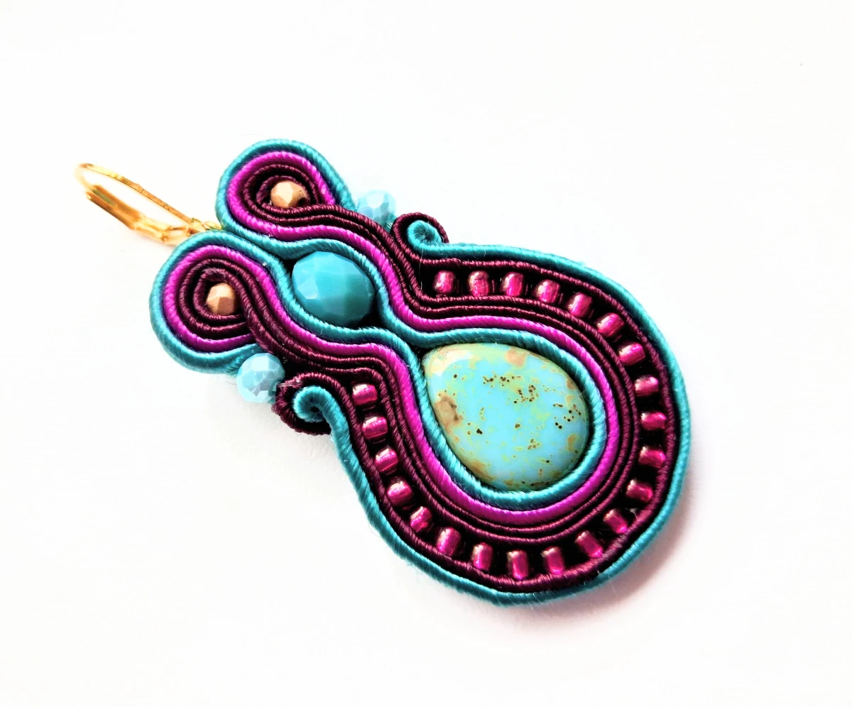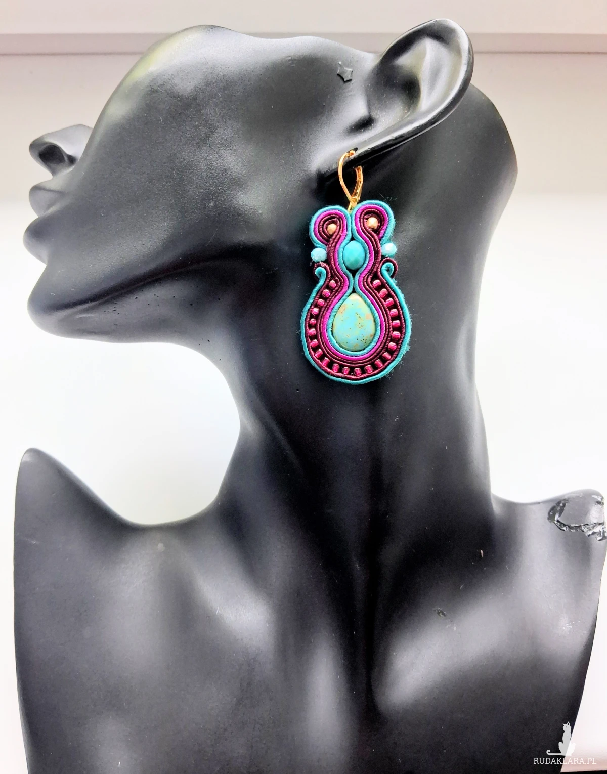 Materiał: sutasz, łezki travertine, japońskie koraliki Toho, koraliki Fire Polish