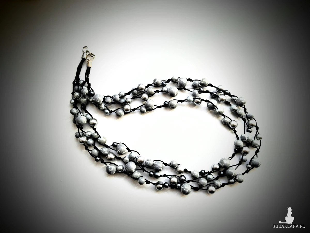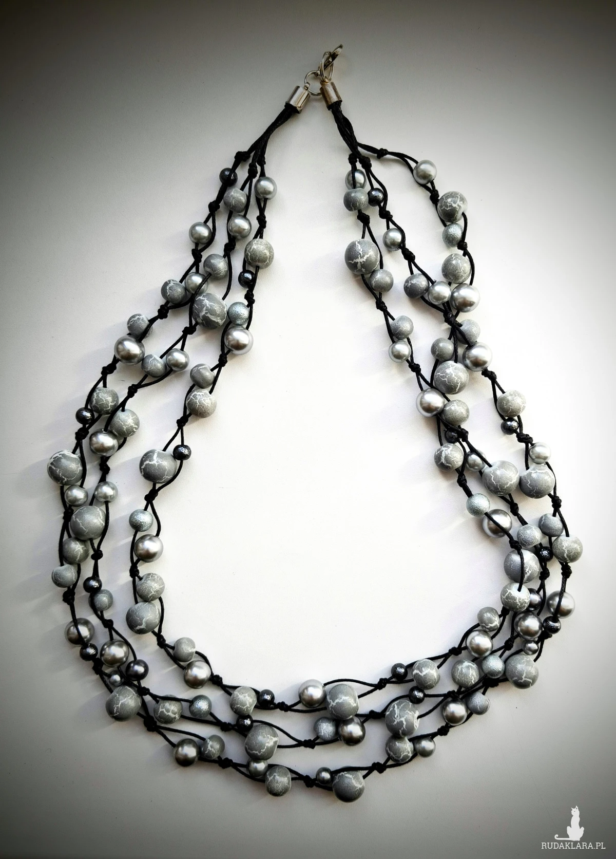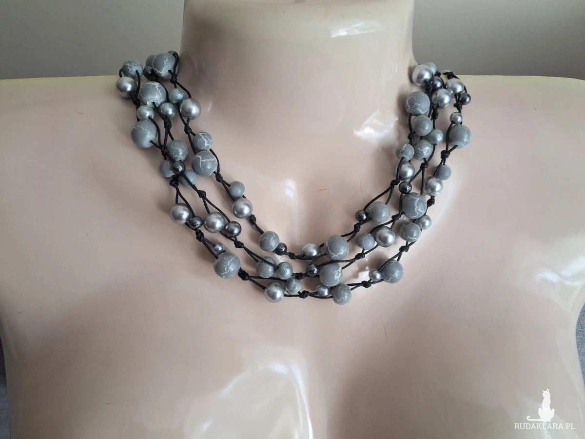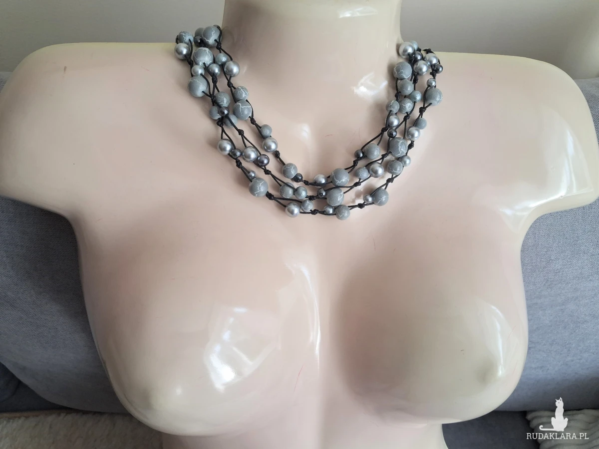 Niezwykły naszyjnik wykonany ręcznie w jednym egzemplarzu z pereł, koralików szklanych i 6 sznurków z bawełny woskowanej.