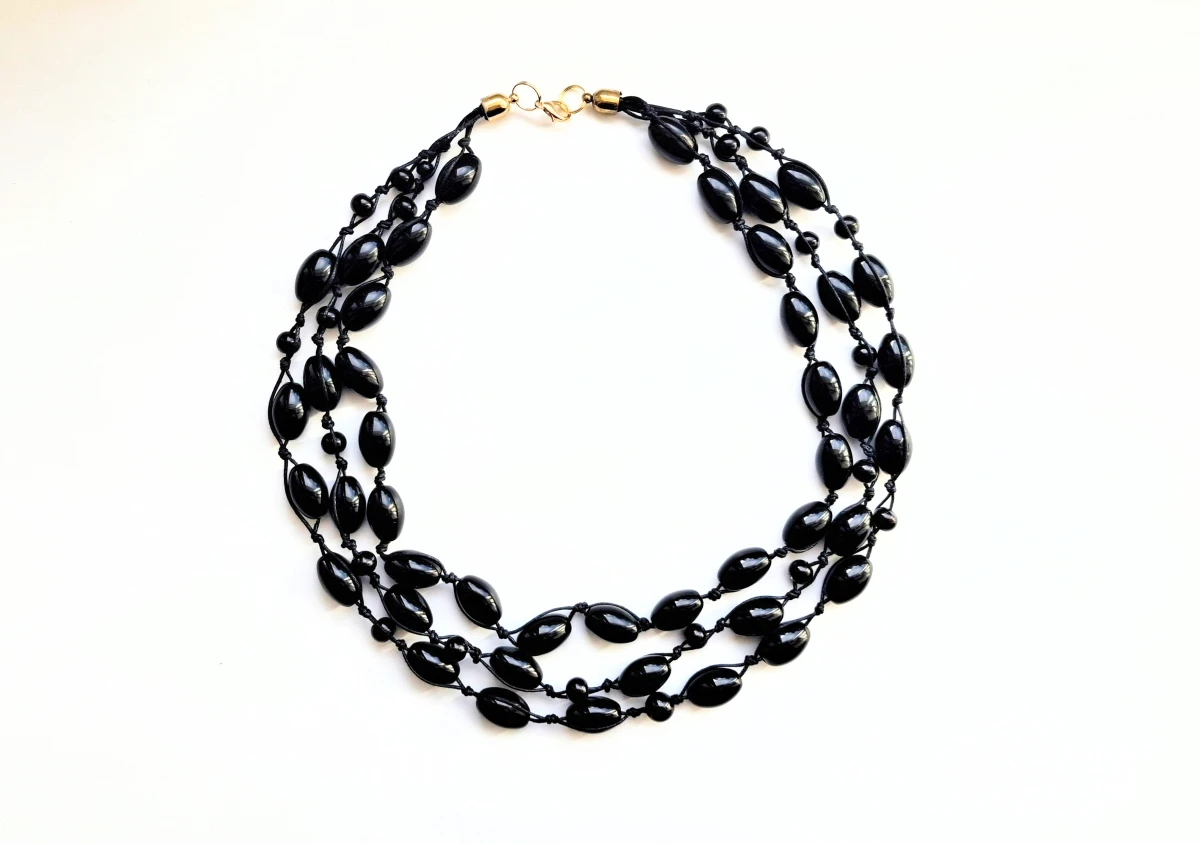 Niezwykły naszyjnik wykonany ręcznie w jednym egzemplarzu z pereł, koralików szklanych i 6 sznurków z bawełny woskowanej.