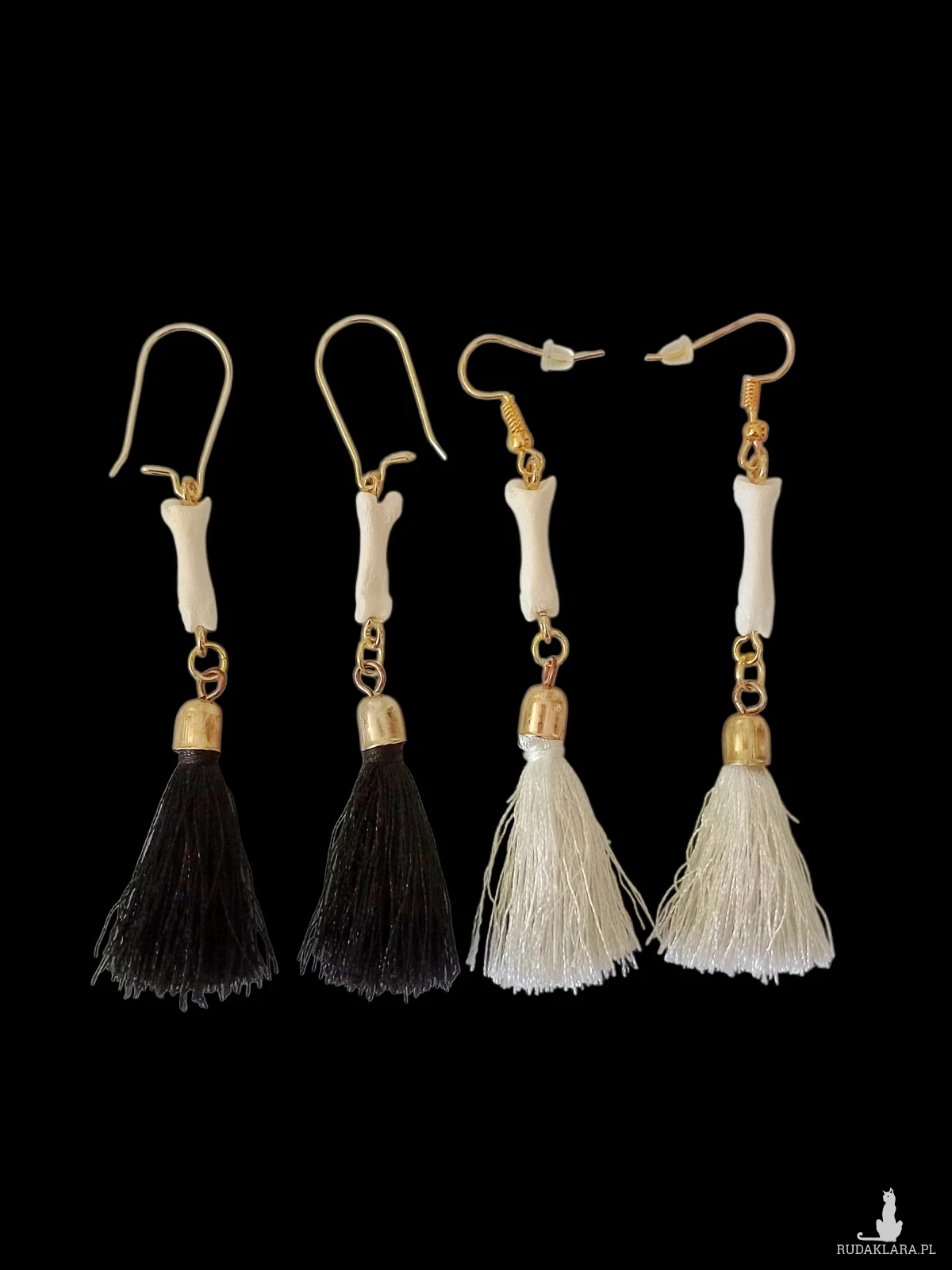 Ręcznie wykonane kolczyki chwosty, czarne i białe (w zestawie 2 pary).