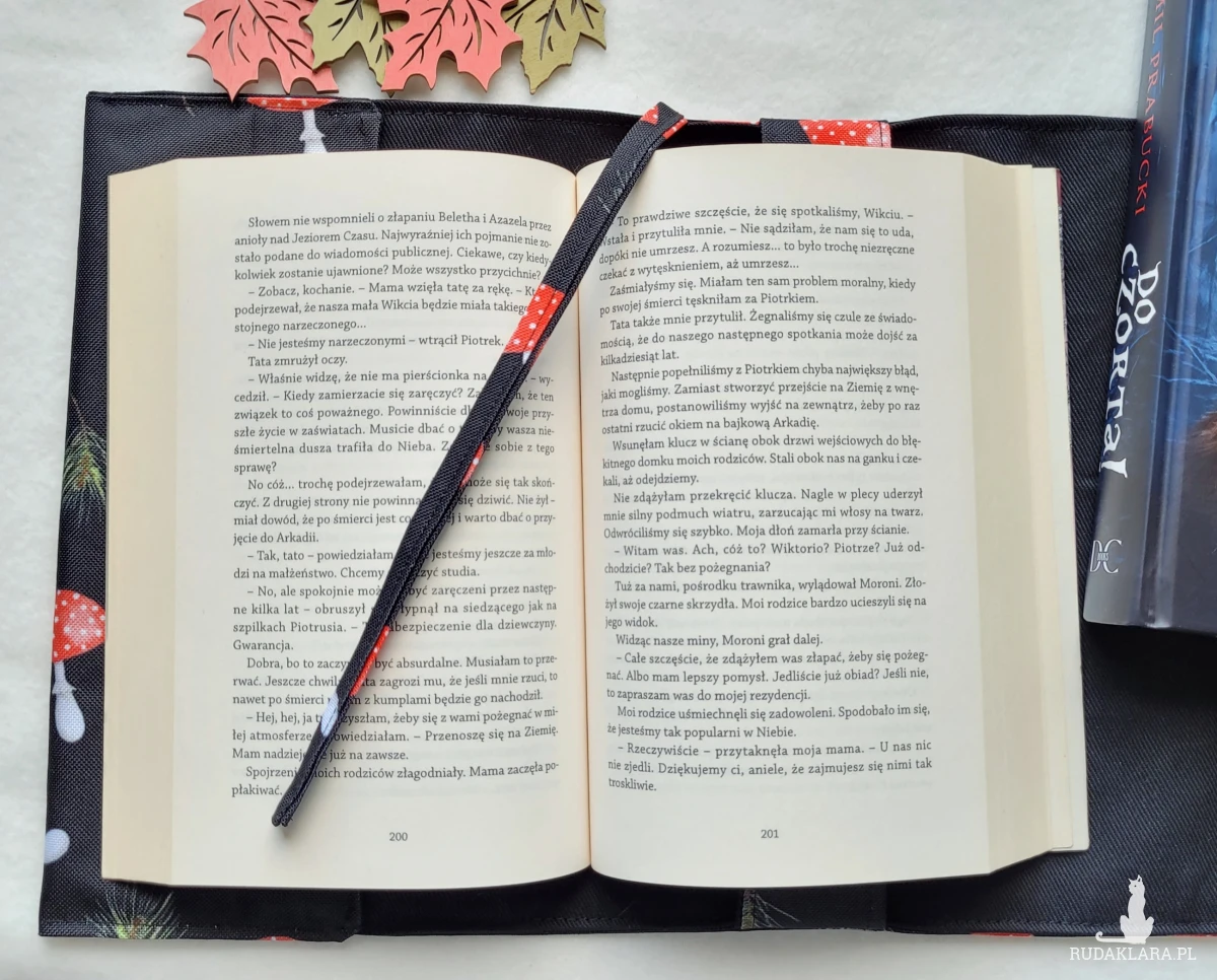 - zapięcie na gumkę, dzięki czemu książka się nie otwiera, a okładka dostosowuje się do grubości tomu;