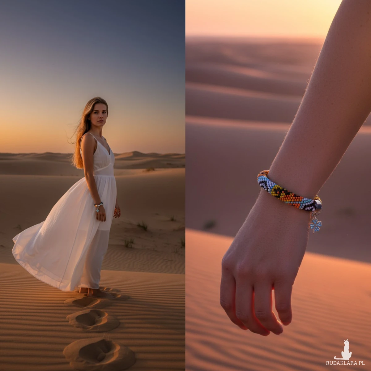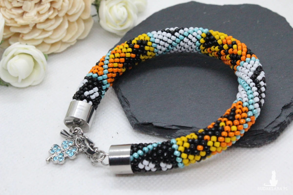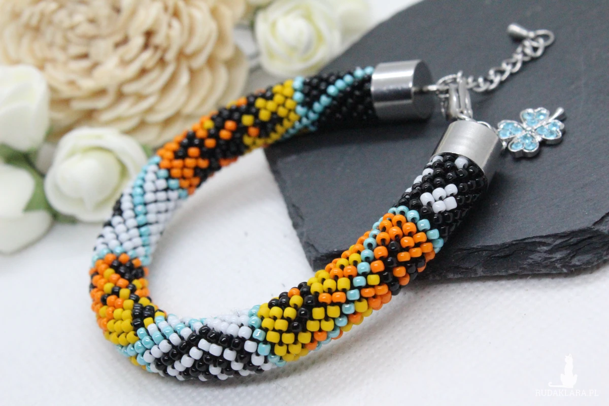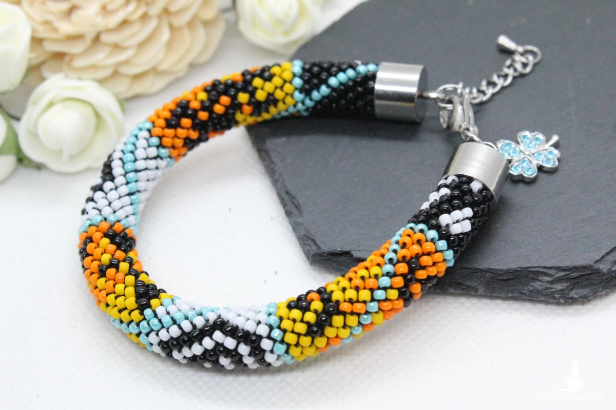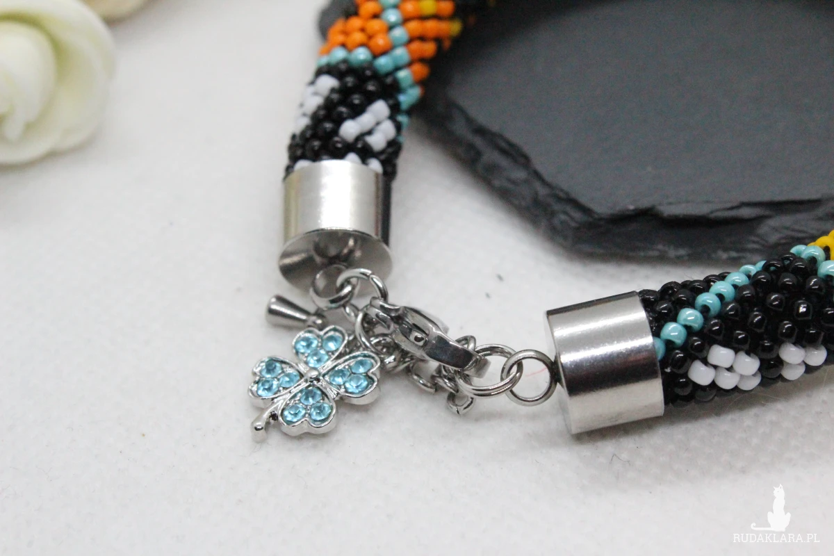 - Bransoletka wykonana ręcznie, techniką ukośnika, ze szklanych