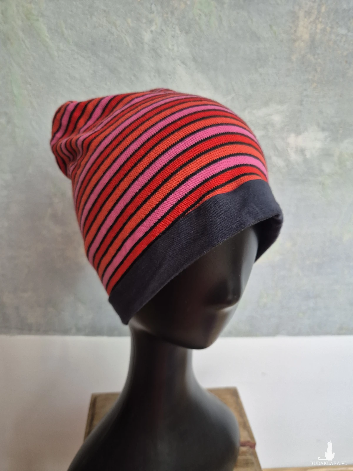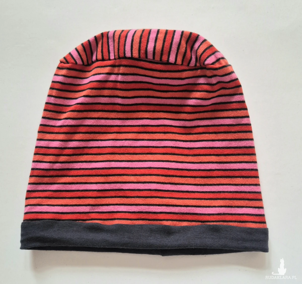 Czapka damska w paski czerwono różowe
