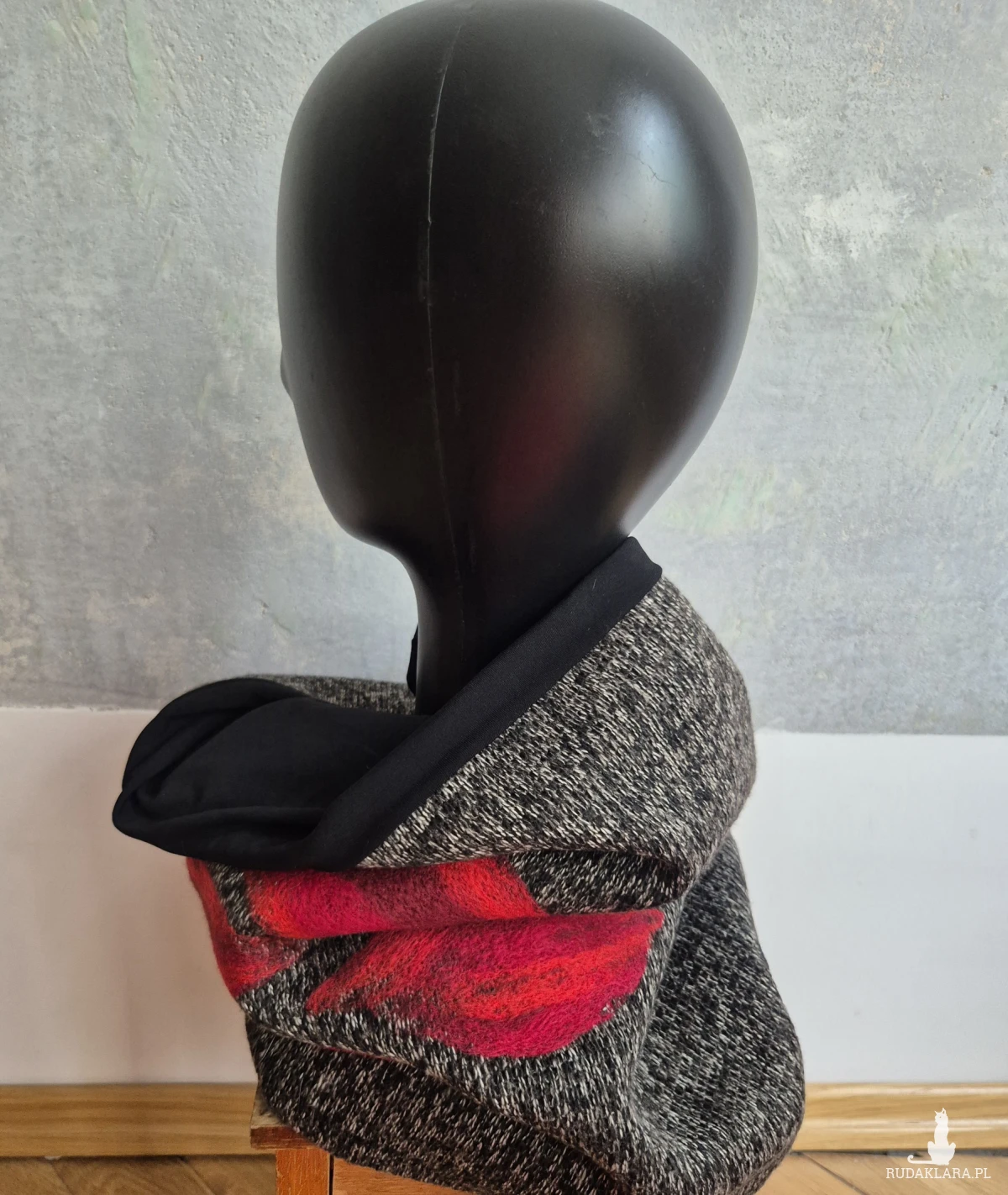 Ciepły komin wciągany przez głowę wełniany na podszewce materiał szary melanż filcowany wełną merynosów ciepły miły ostatnia sztuka dostępna od ręki Box K1