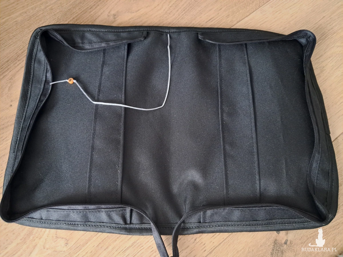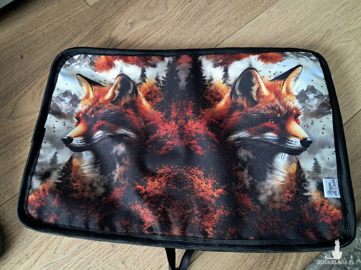 Wykonane z materiałów wodoodpornych, zamykane na zamek błyskawiczny. W środku cieniutka zakładka z małą literką na końcu. Możesz w nim przechowywać książki ale także je czytać- nie trzeba go ściągać. Usztywnione ale nadal miękkie i przyjemne.