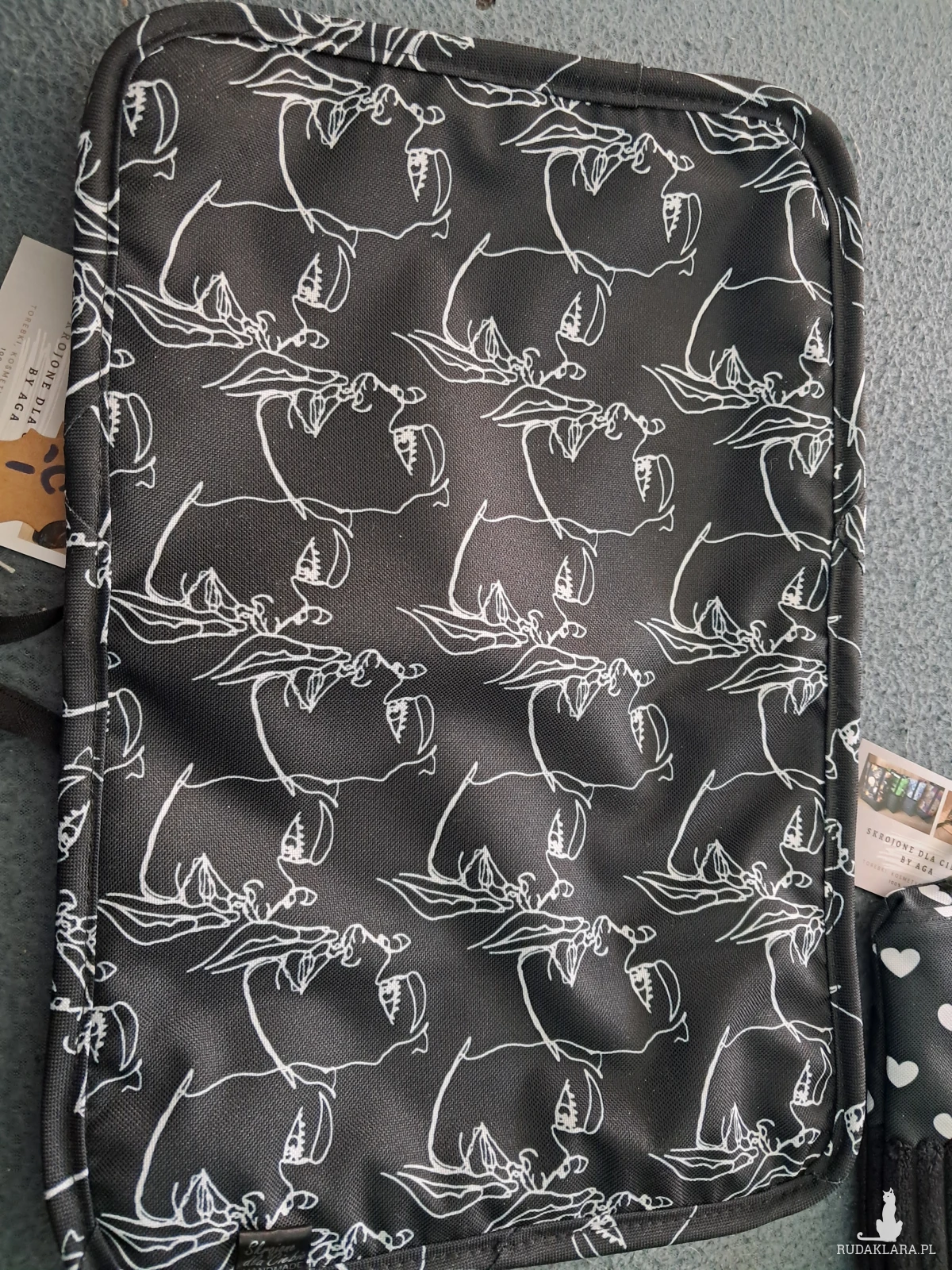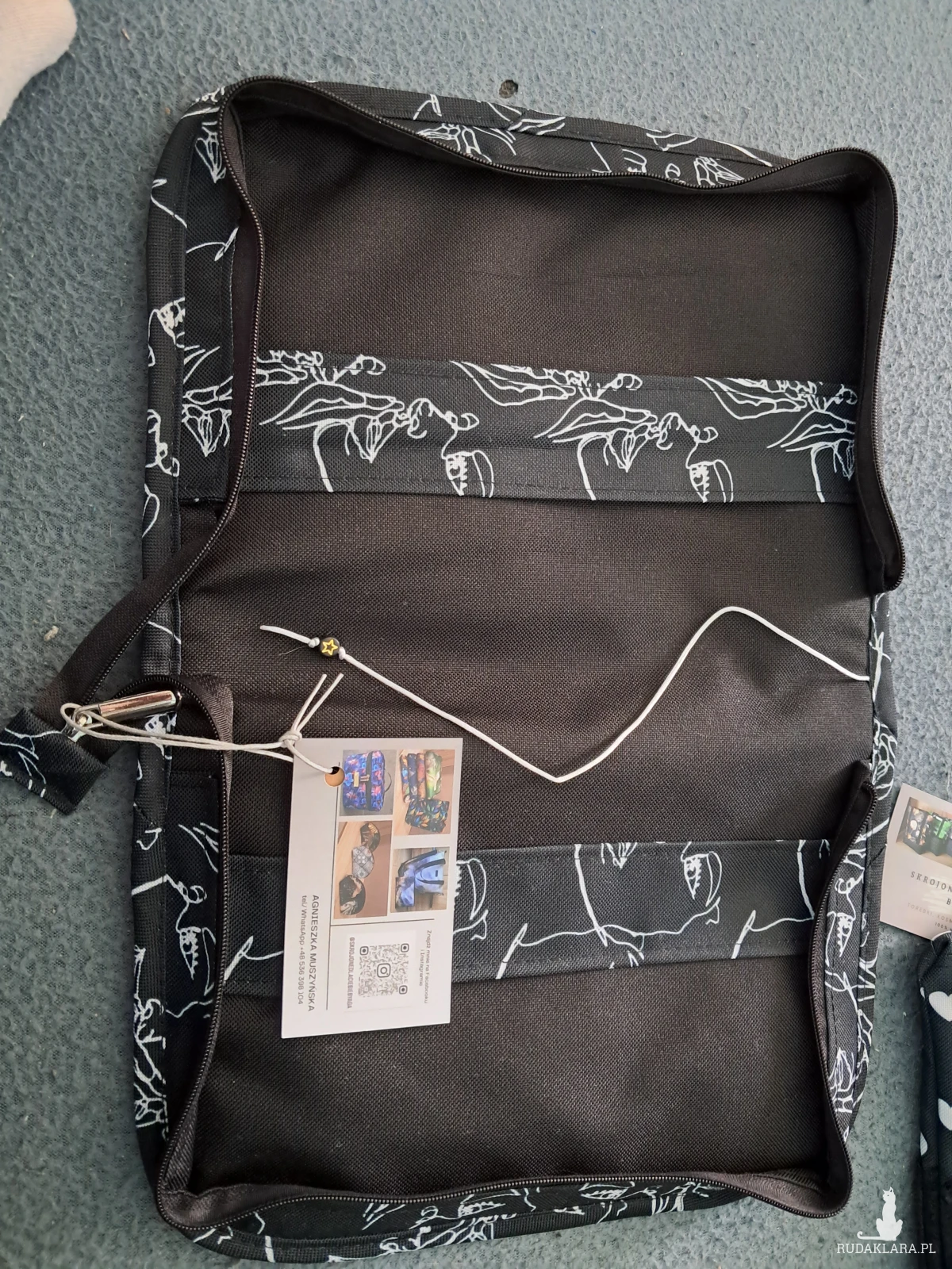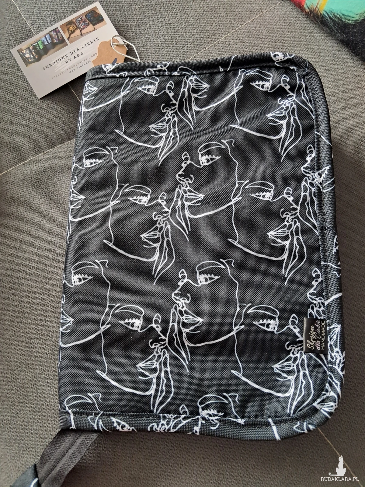 Wykonane z materiałów wodoodpornych, zamykane na zamek błyskawiczny. W środku cieniutka zakładka z małą literką na końcu. Możesz w nim przechowywać książki ale także je czytać- nie trzeba go ściągać. Usztywnione ale nadal miękkie i przyjemne.