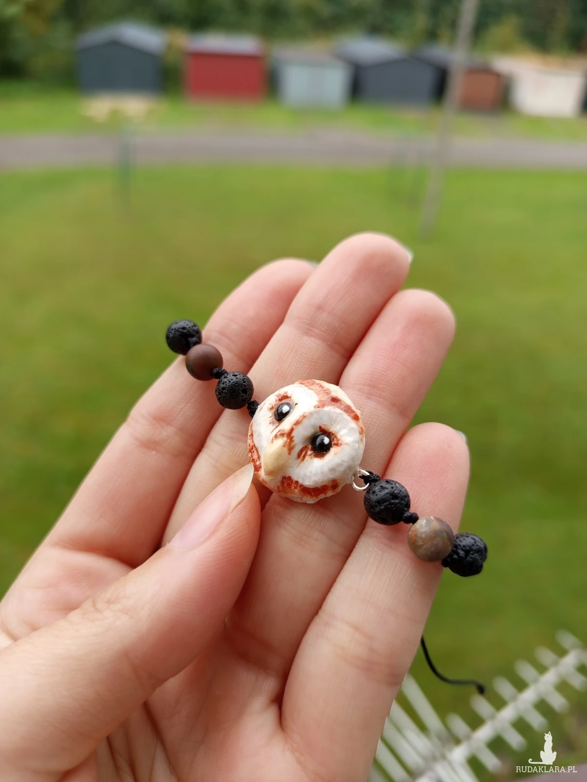 🦉💎 Bransoletka z sową, lawą wulkaniczną i agatem – regulowana 💎🦉