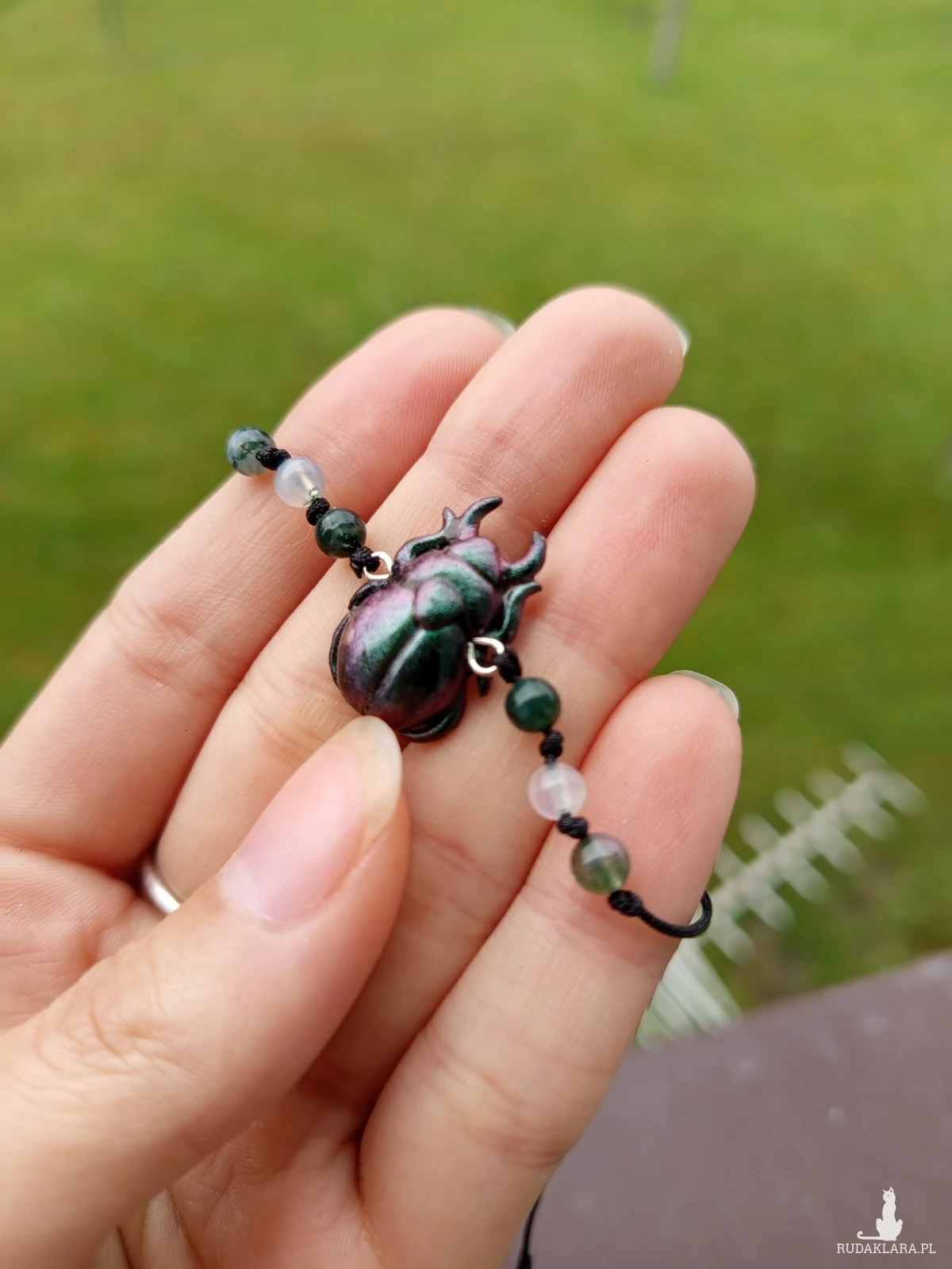 🪲💎 Bransoletka z żuczkiem i agatem – regulowana 💎🪲