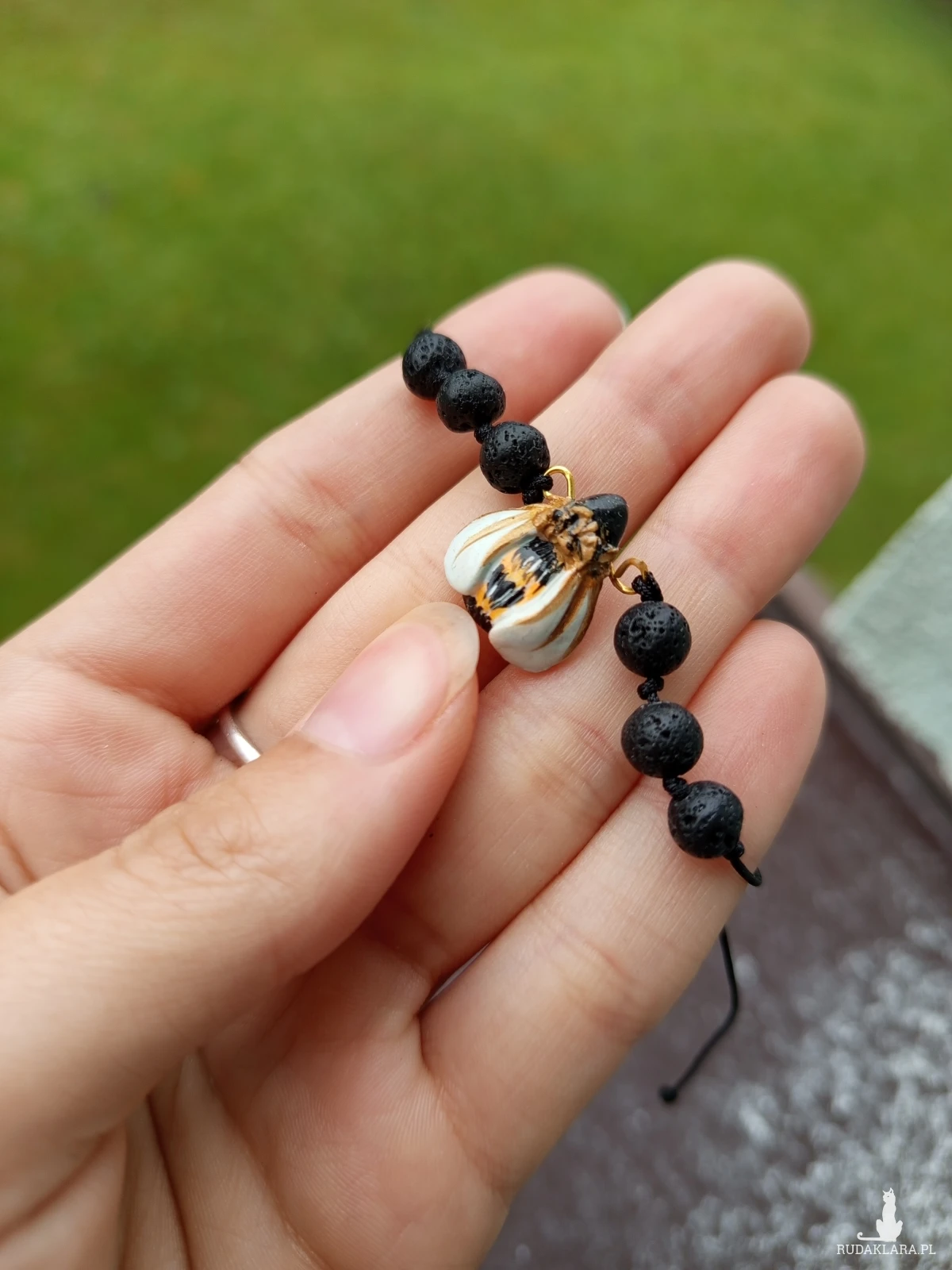 🐝🌋 Bransoletka z pszczółką i lawą wulkaniczną – regulowana 🌋🐝