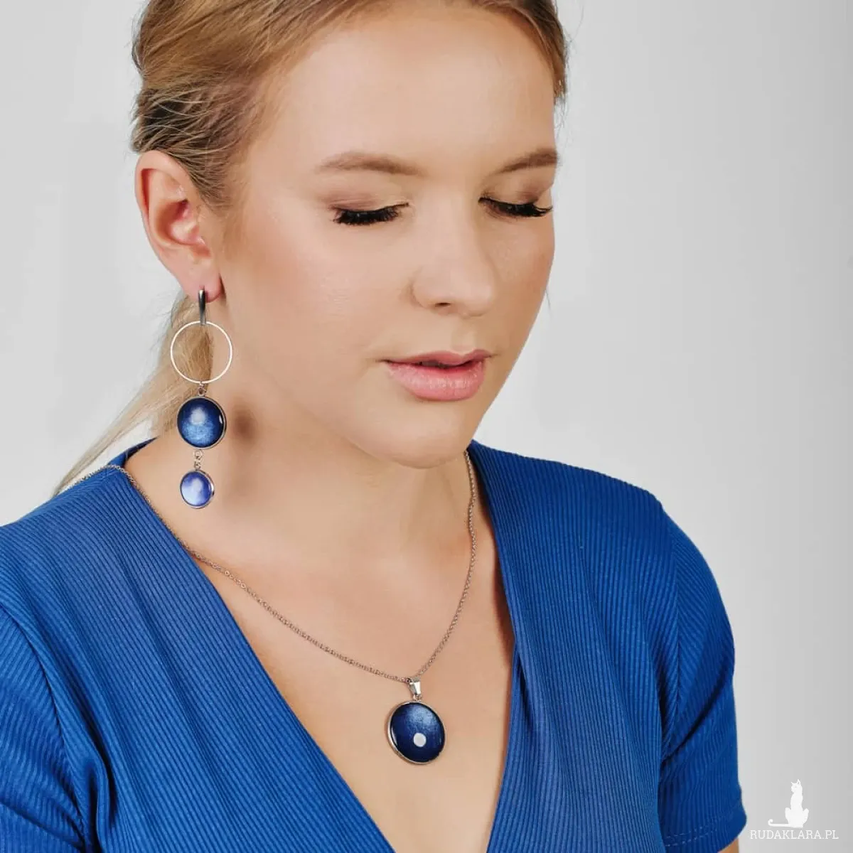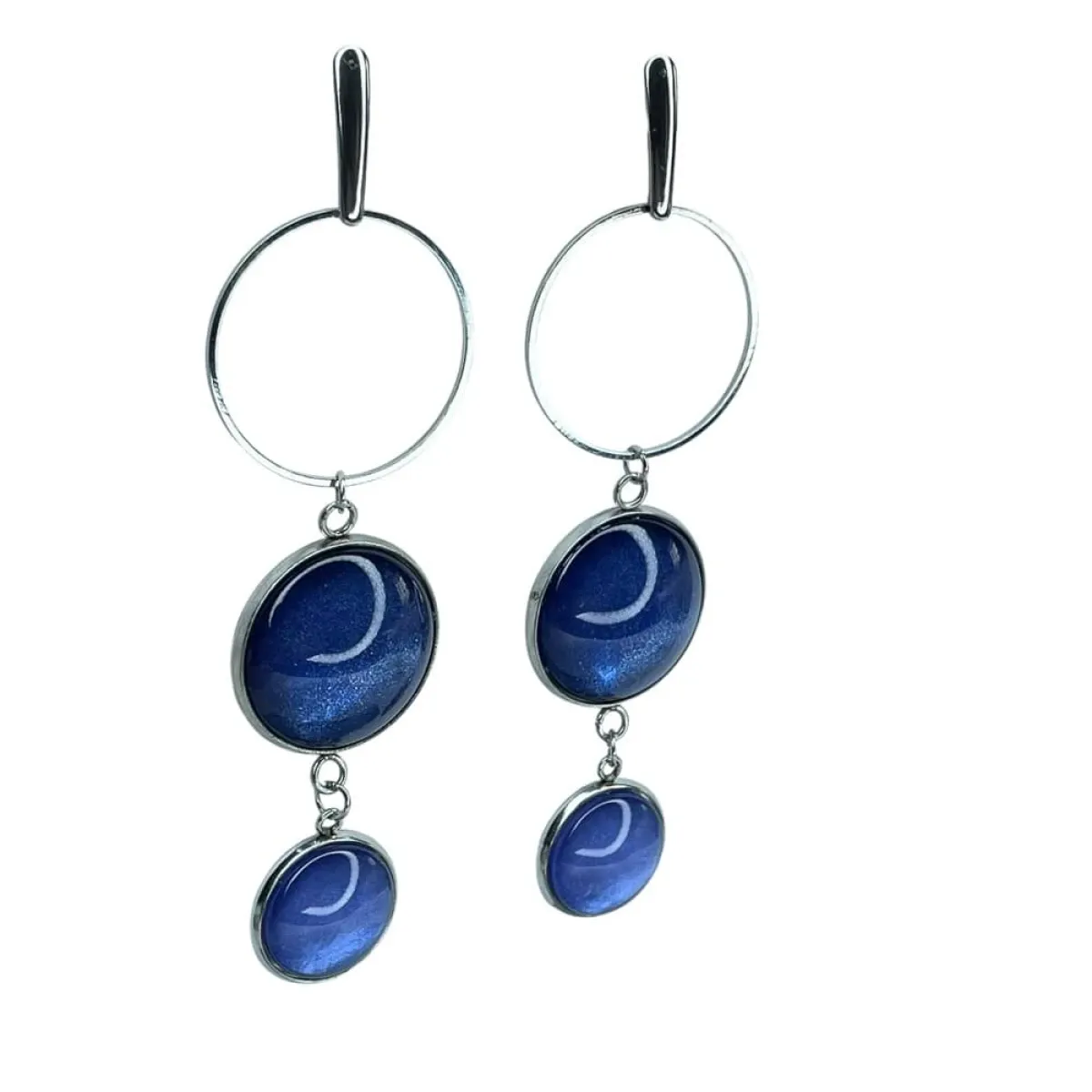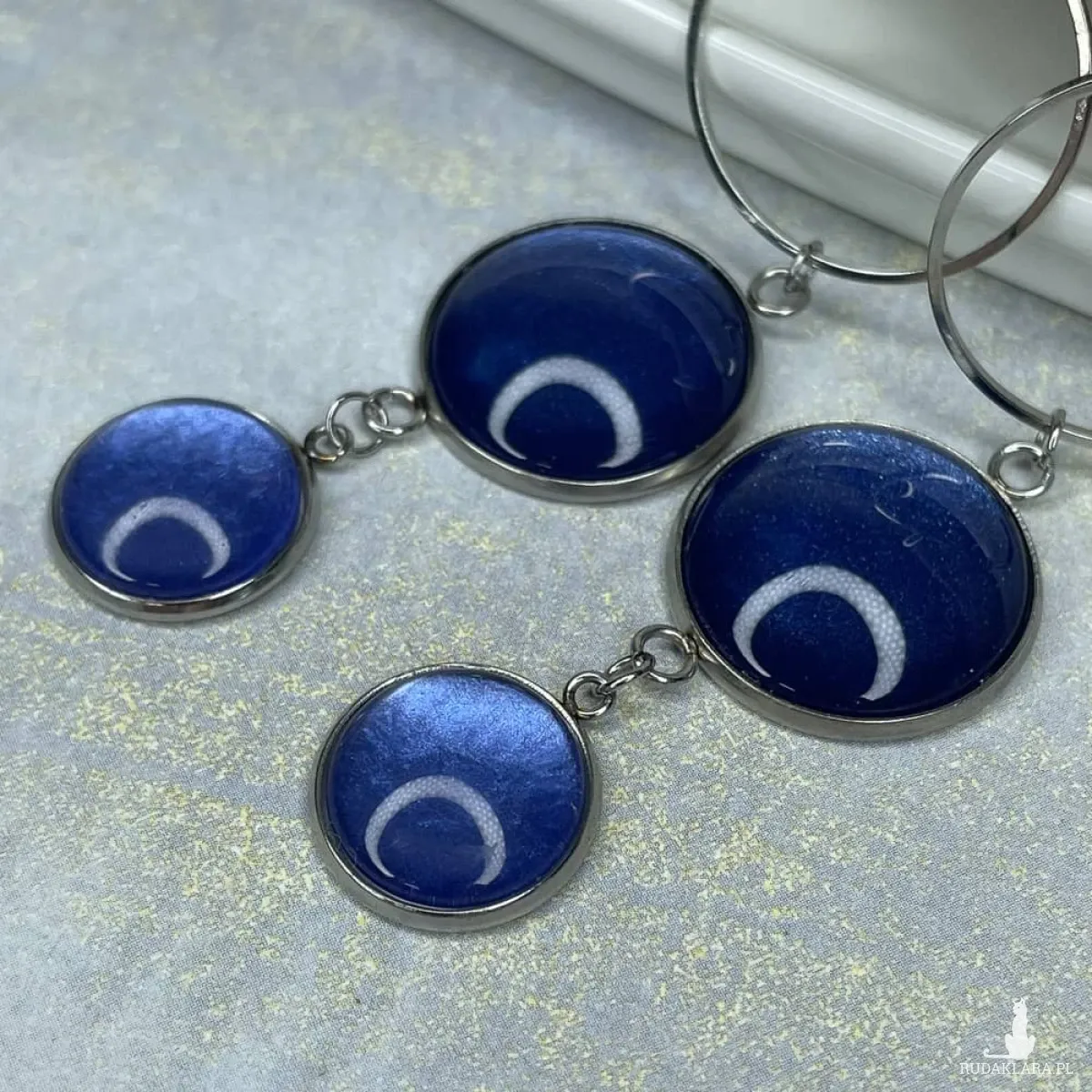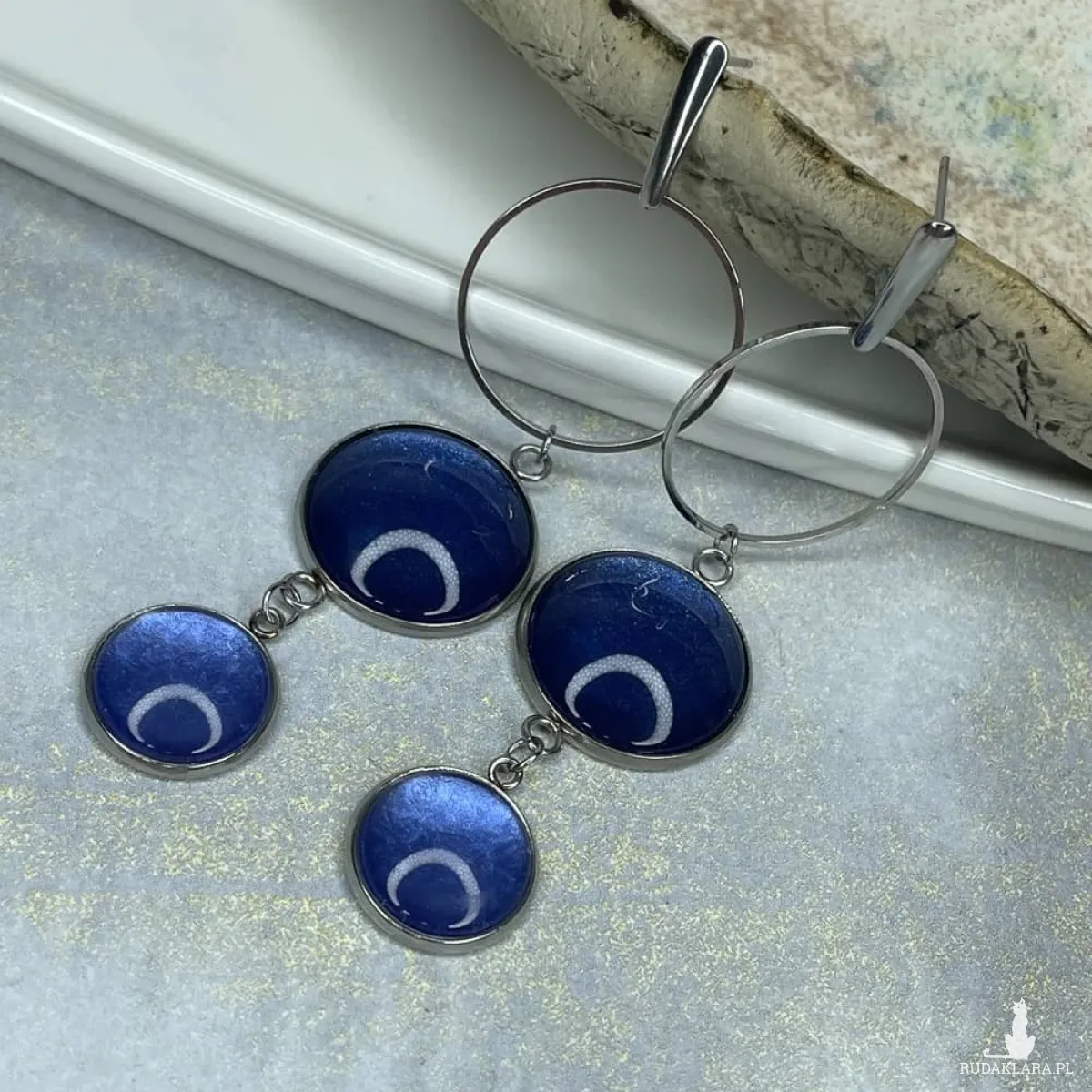 Te pełne blasku kolczyki są częścią kolekcji “W blasku perłowego księżyca”. Kolczyki wykonane są z ręcznie malowanych kaboszonów umieszczonych w bazach ze stali szlachetnej. Szklane elementy zachwycają subtelnym, opalizującym blaskiem, który jest niczym odbicie księżyca na tafli wody. Kolczyki mienią się w świetle, przyciągając wzrok i dodają elegancji każdej stylizacji. Ten dodatek jest idealny dla osób ceniących sobie wyrafinowaną i ponadczasową biżuterię. Materiał: stal szlachetna, malowane ręcznie szkło Długość kolczyków: 8,5 cm Średnica kaboszonu: 20; 16 mm Waga pary kolczyków: ok 13,6 g SKU: e4/m33 Jak dobierać komplety? Kolory na zdjęciach mogą się różnić ze względów technicznych. Aby dobrać identyczny odcień, zwróć uwagę na numer SKU produktu. Pierwsza część to numer modelu, a numery po “/” to kolor, np. /17 oznacza morski perłowy. Produkty z tym samym SKU po "/" mają identyczny kolor. Dzięki temu możesz łatwo tworzyć komplety, mając pewność, że biżuteria jest w tym samym odcieniu. Stwórz własny komplet! Jeśli nie ma biżuterii w wybranym modelu lub kolorze którego szukasz, możesz ją zamówić indywidualnie. Wyślij do nas maila z nazwą, numerem modelu i kolorem, a my w miarę możliwości wykonamy biżuterię na zamówienie. Termin realizacji ustalamy indywidualnie. Na zdjęciu został przedstawiony również wisior Dolunay e35/20 Biżuteria zostanie elegancko zapakowana. W przypadku zakupu kompletu, biżuteria zostanie zapakowana razem. Kolory na zdjęciach mogą delikatnie różnić się od rzeczywistych.