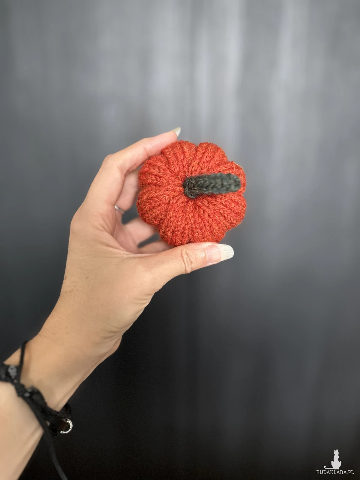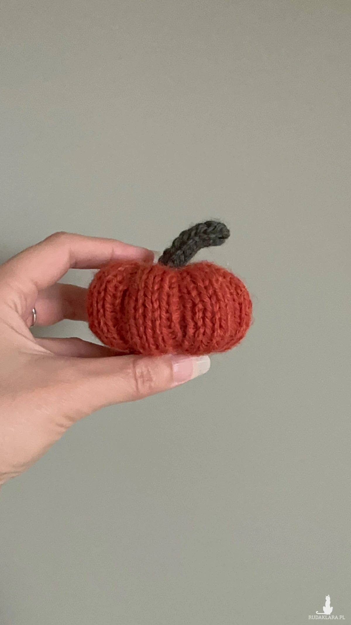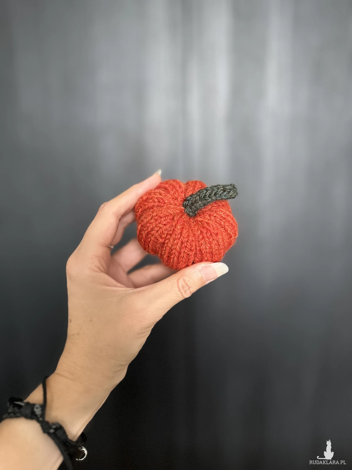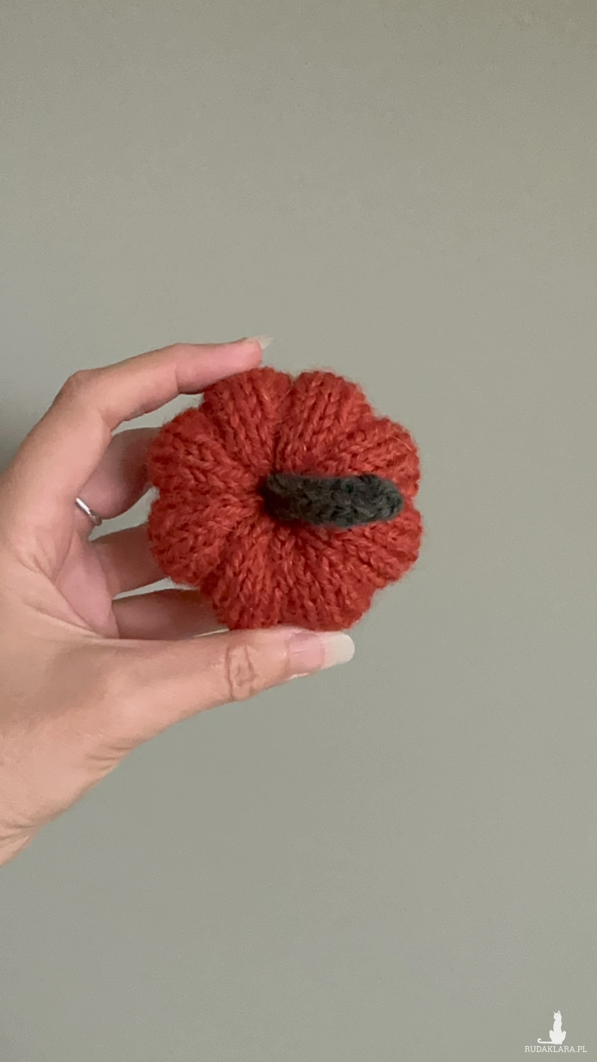 Urocza, ręcznie wykonana wełniana dynia, stworzona z pasją w zachwycającym, ciepłym odcieniu pomarańczy.