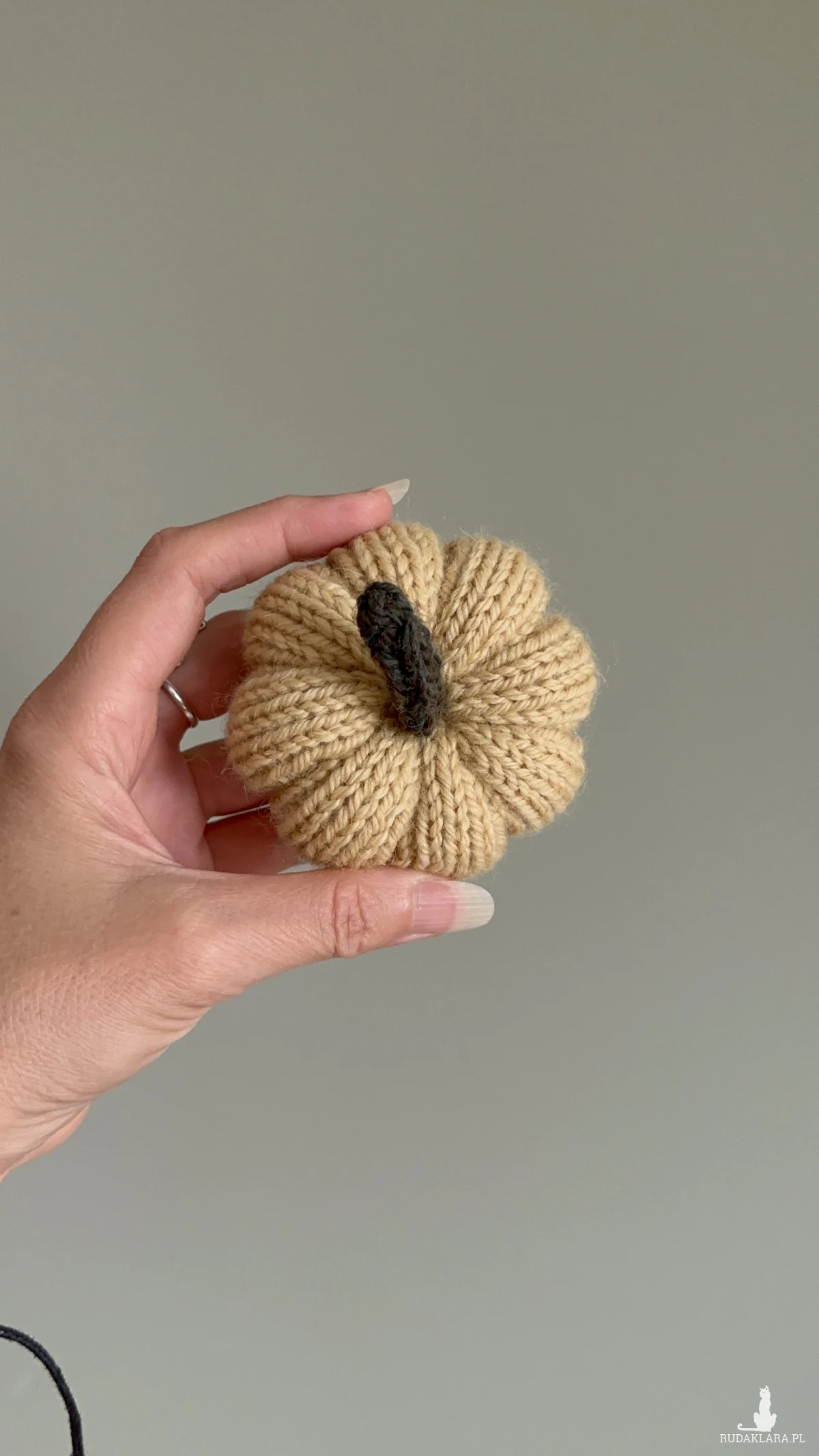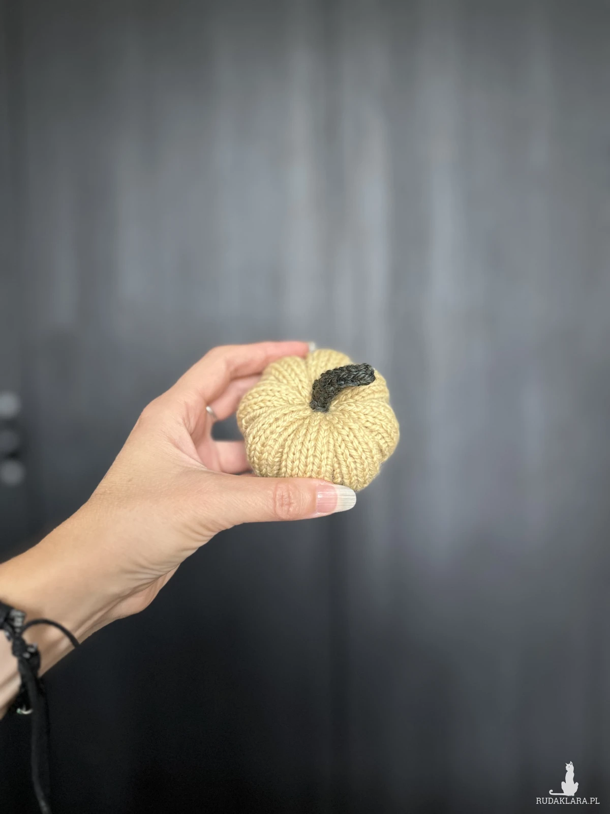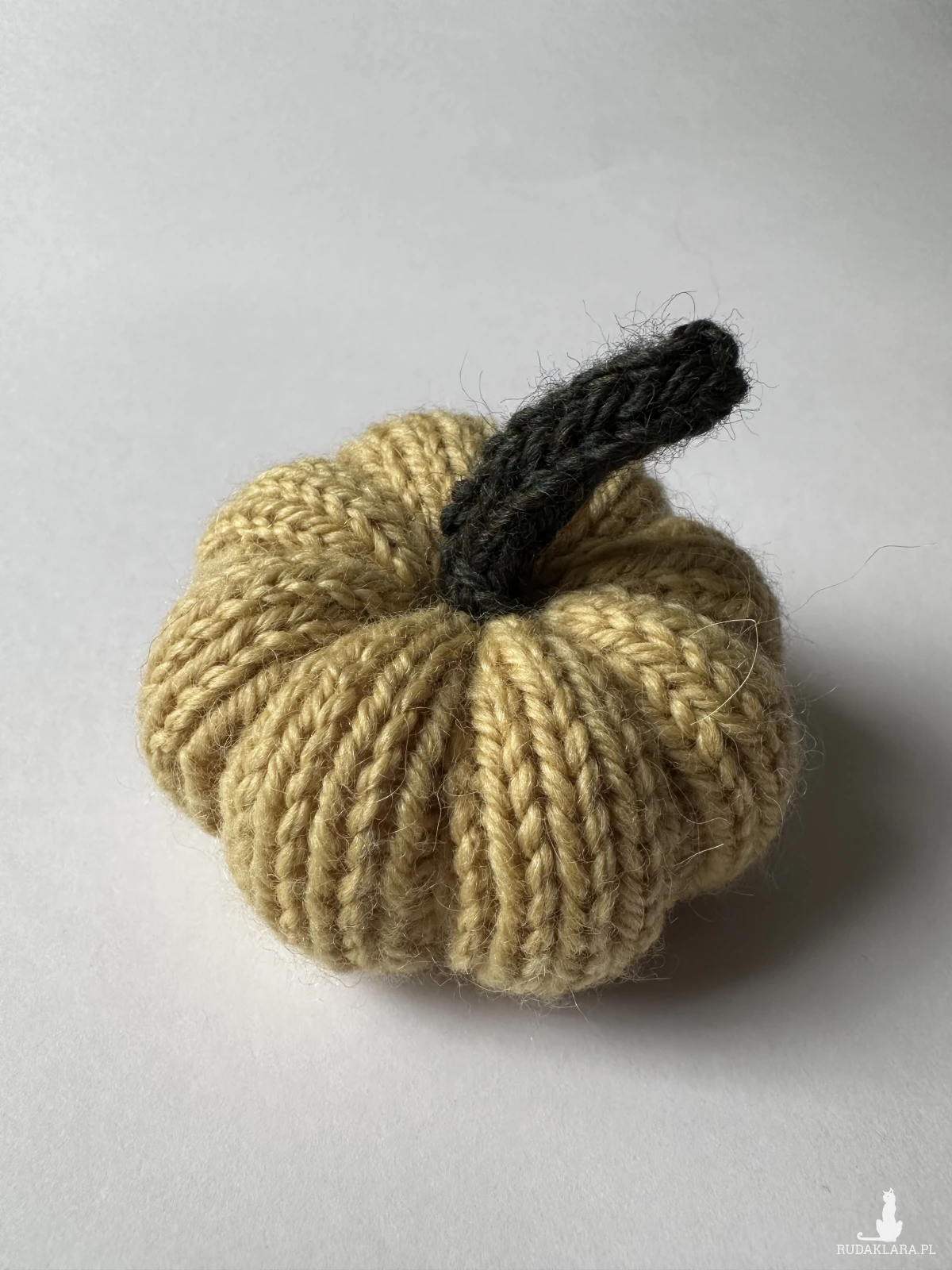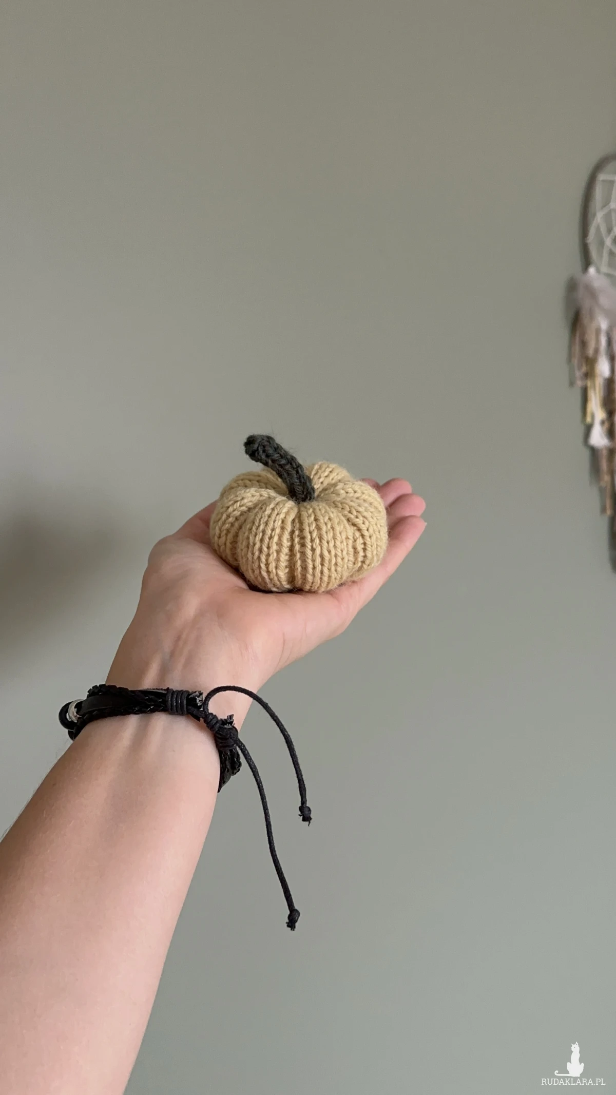 Urocza, ręcznie wykonana wełniana dynia, stworzona z pasją w kolorze żółtym.