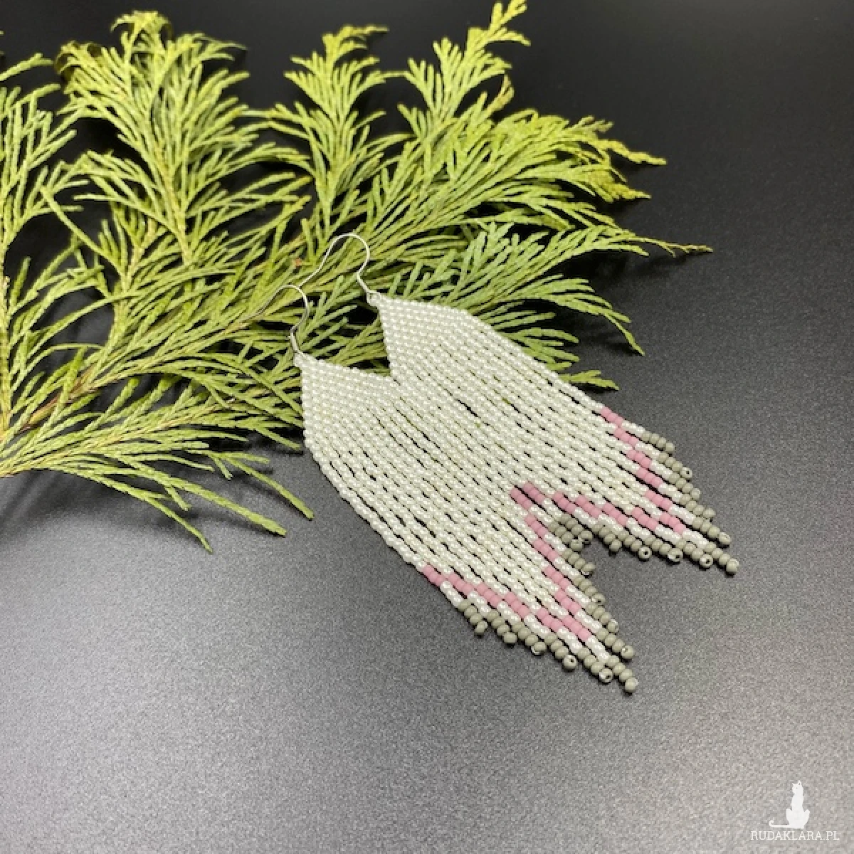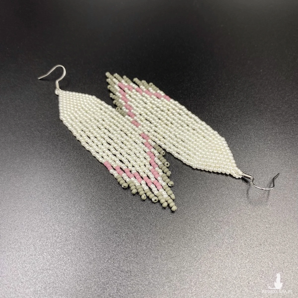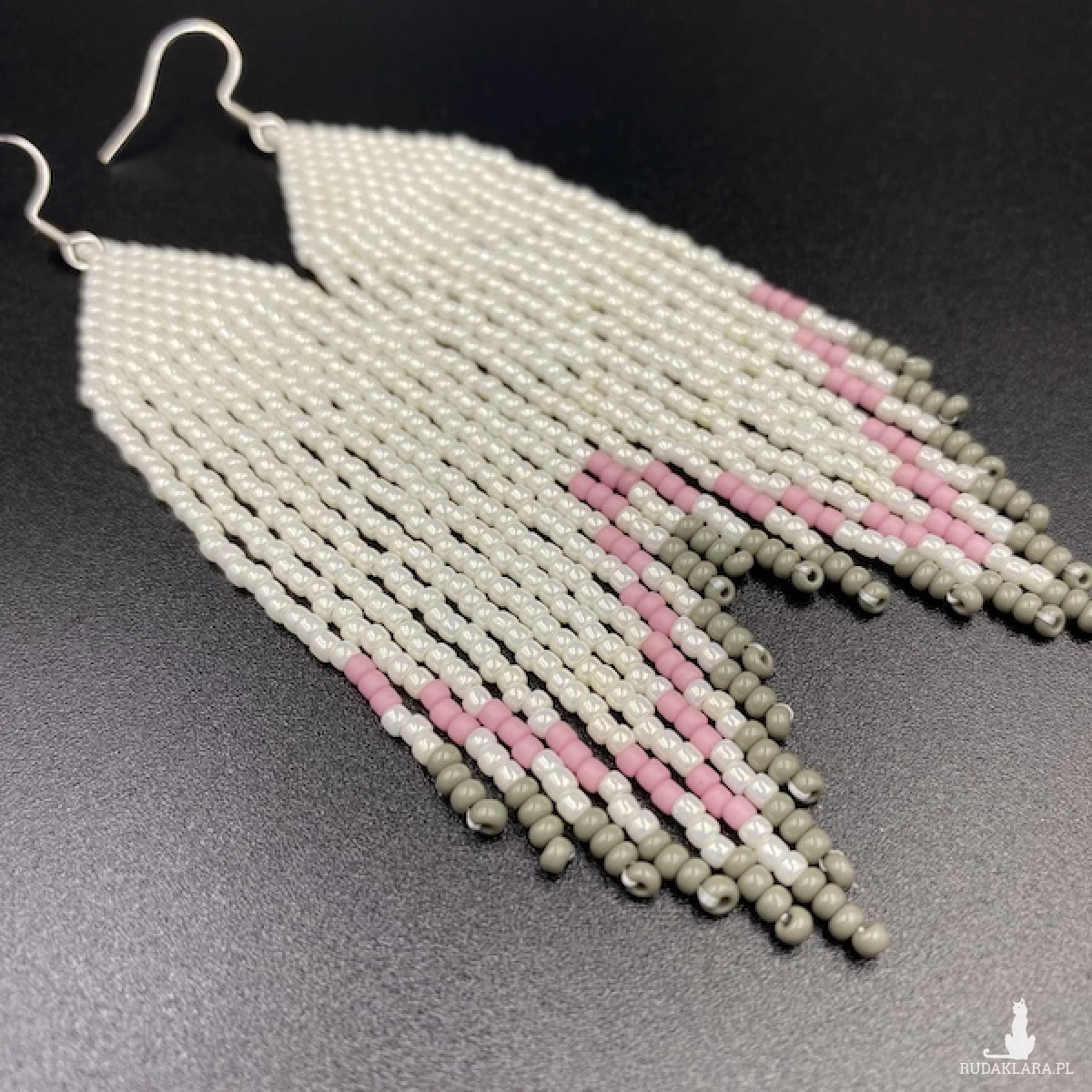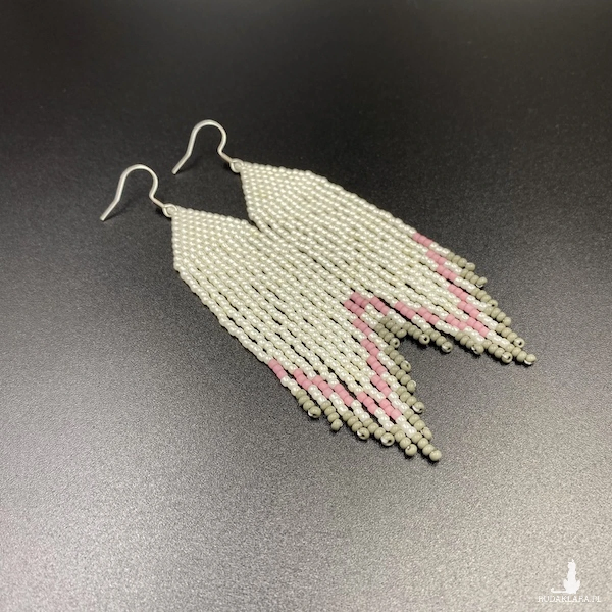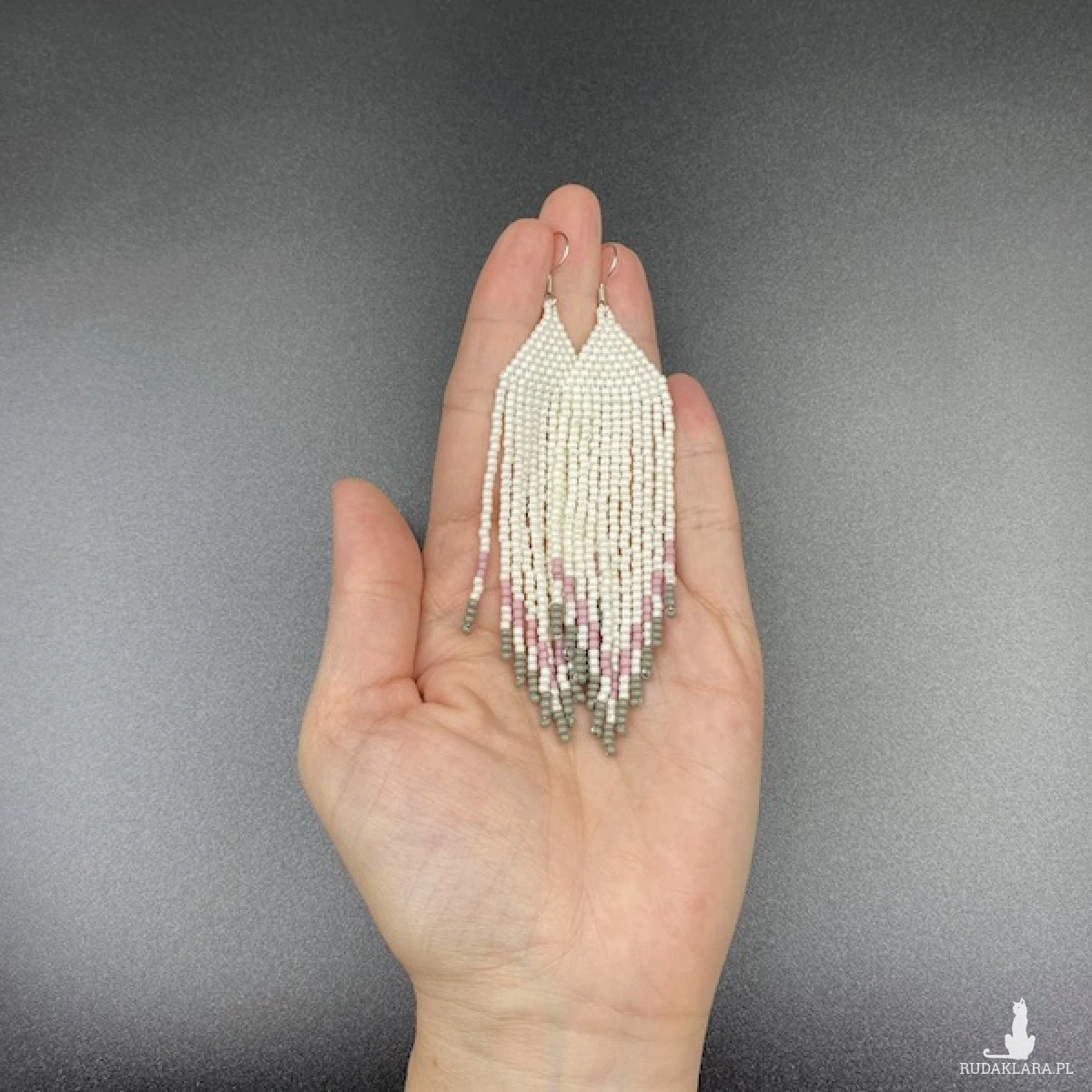 Kolory kolczyków: kremowy, ciemny pudrowy róż, szary.