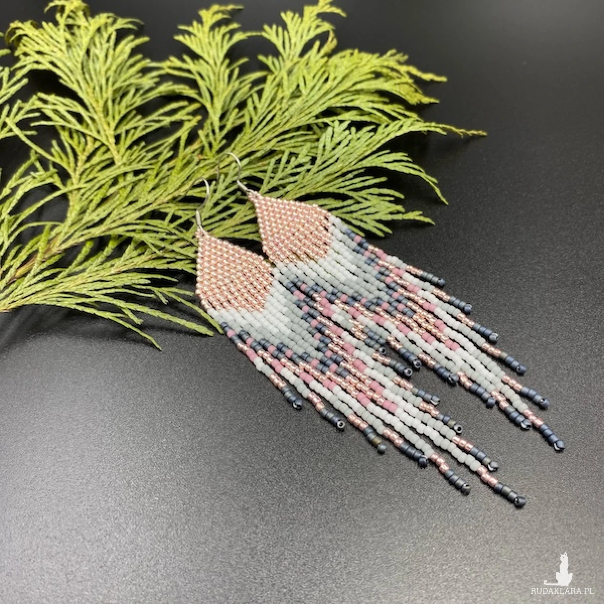 Etniczne kolczyki zostały w 100% utkane ręcznie z koralików TOHO 11. Każdą pracę wykonuję bardzo starannie.