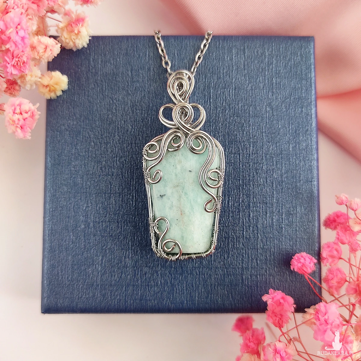Naszyjnik z amazonitem to wyjątkowa biżuteria, która łączy w sobie elegancję i naturalne piękno kamieni szlachetnych. Wykonany metodą wire wrapping, zachwyca misternym oplataniem kamienia, które podkreśla jego unikalną barwę. Stal chirurgiczna, z której powstała oprawa, zapewnia trwałość i odporność na korozję, dzięki czemu naszyjnik może być noszony na co dzień. Jego subtelny, ale wyrazisty design sprawia, że idealnie komponuje się z różnymi stylizacjami, od codziennych po bardziej eleganckie.