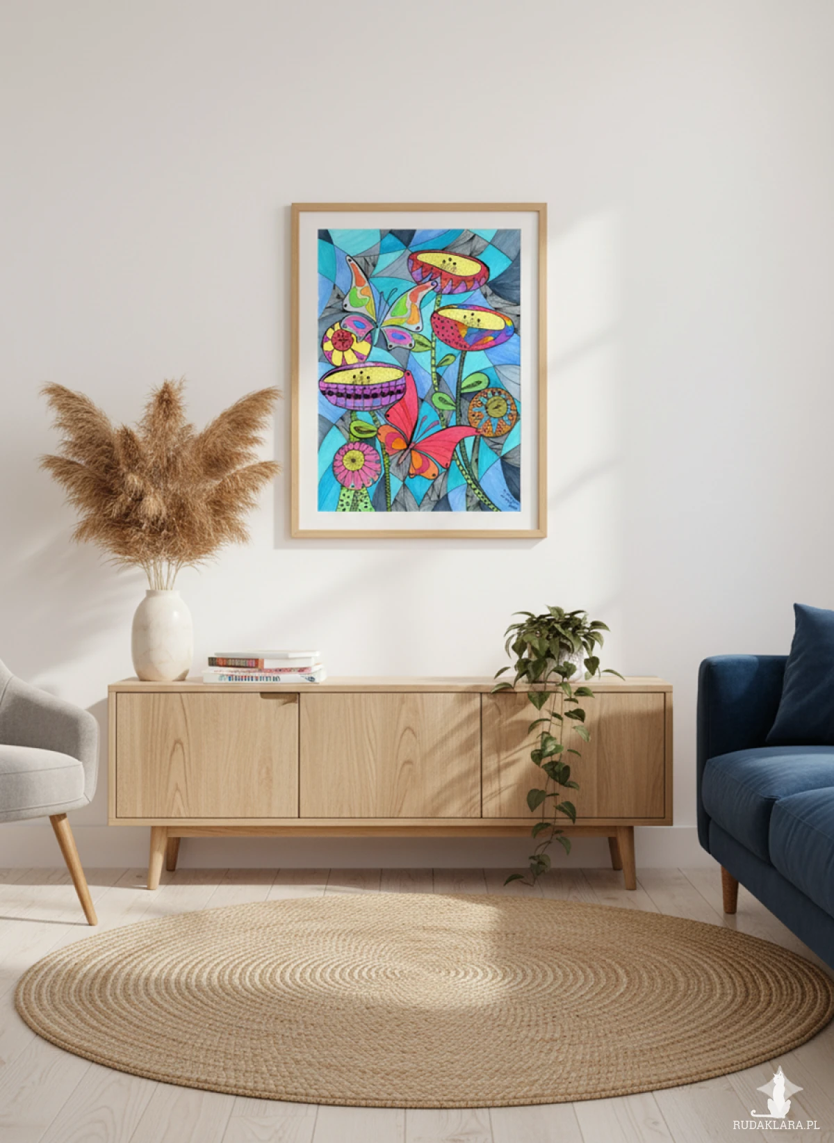 Wydruk autorskiego rysunku na satynowym papierze o gramaturze 200g/m2 - sprzedawany bez ramki - rysunki w ramkach na zdjęciach to wizualizacje.