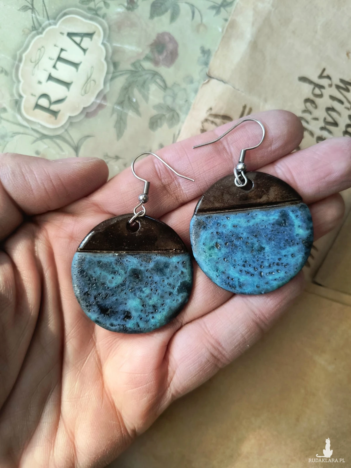 Ręcznie robione kolczyki ceramiczne wykonane z gliny szamotowej. Dla Pań poszukujących unikatowej biżuterii lub jako upominek dla bliskiej nam osoby. Jeśli po potwierdzeniu u artysty okaże się, że produkt jest aktualnie niedostępny, to zostanie wykonana podobna praca na zamówienie w terminie do 2 tygodni.