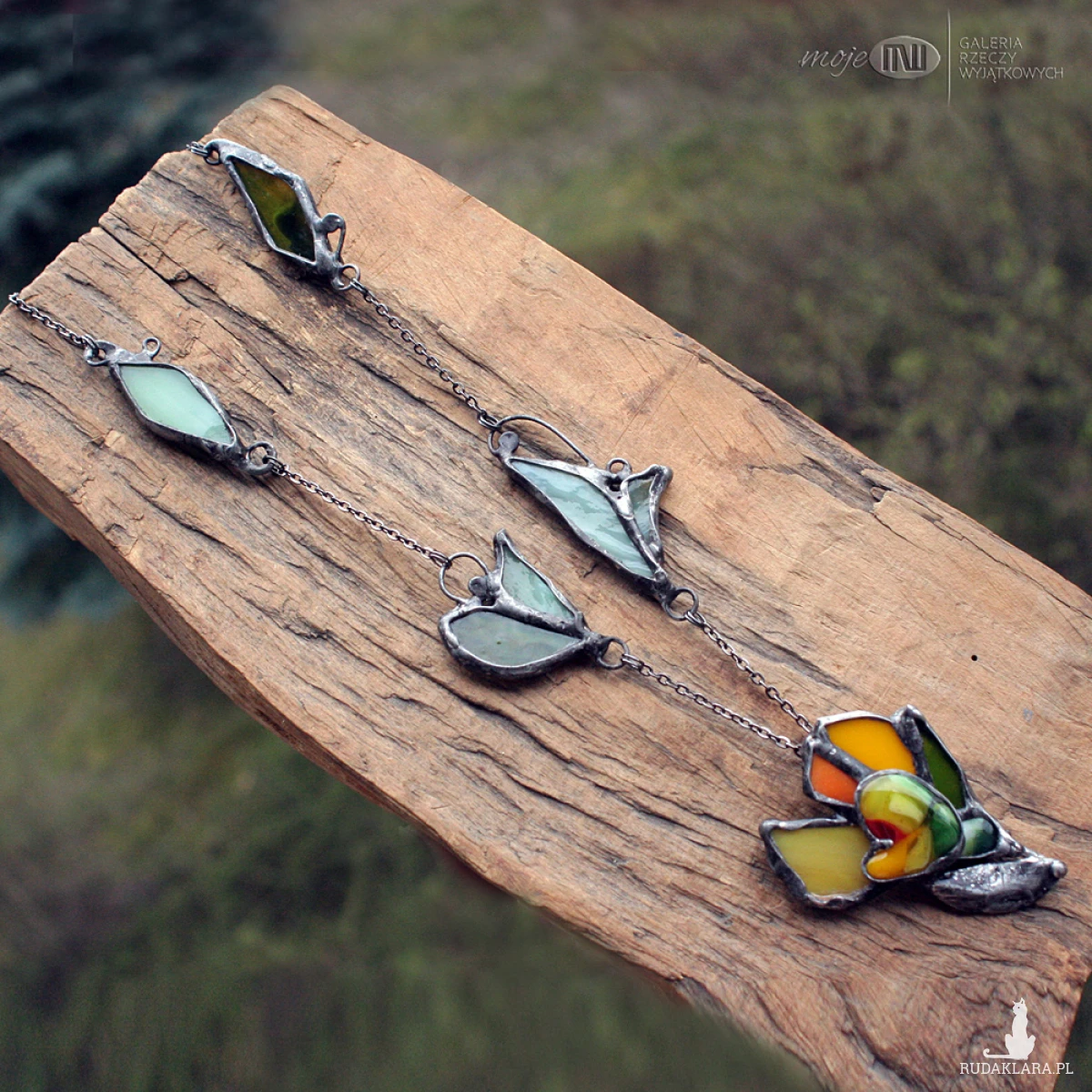 Wielkość - kwiat 4 x 5,5 cm, listki 3-4,5 cm, łańcuszek 84 cm