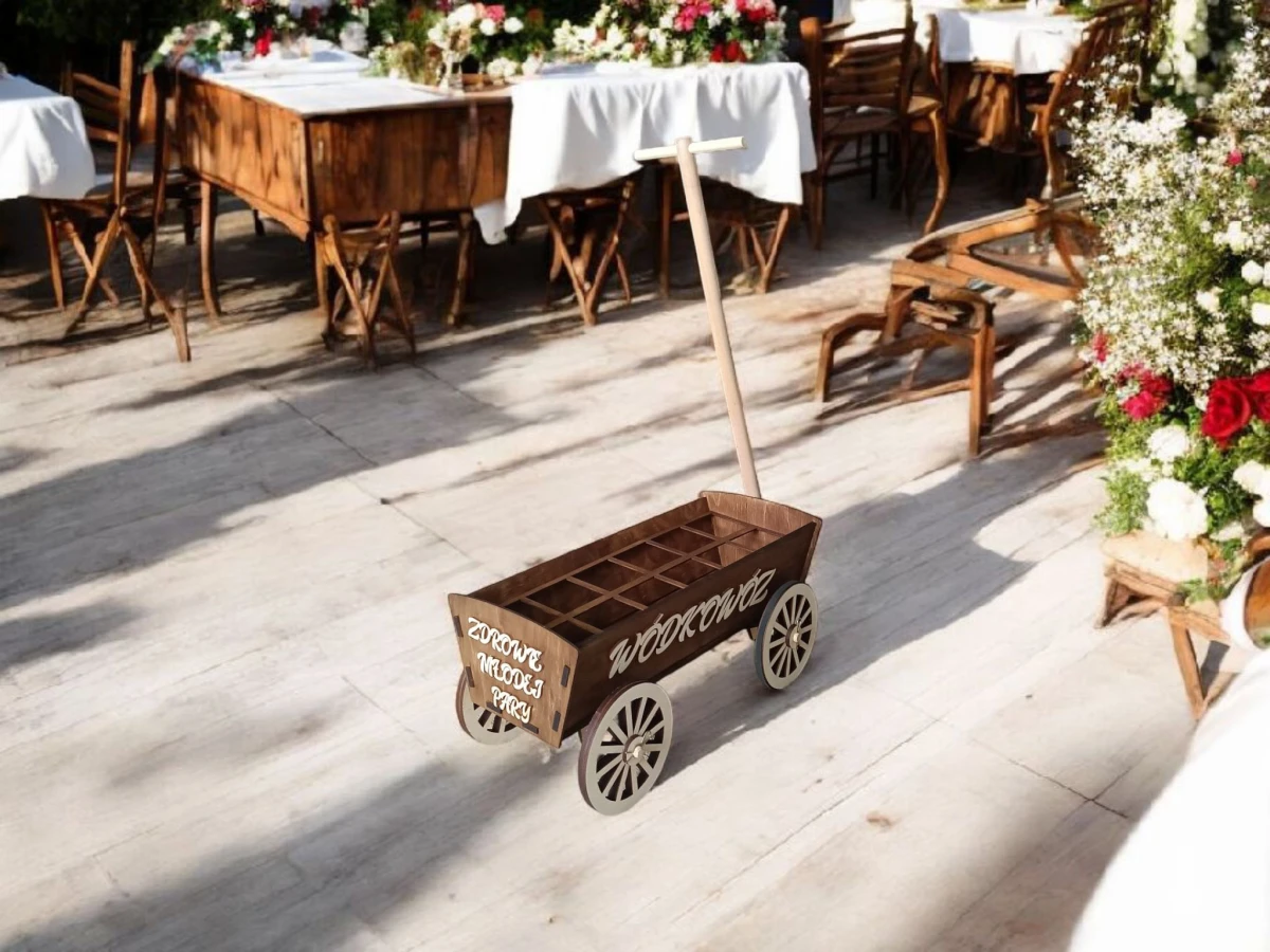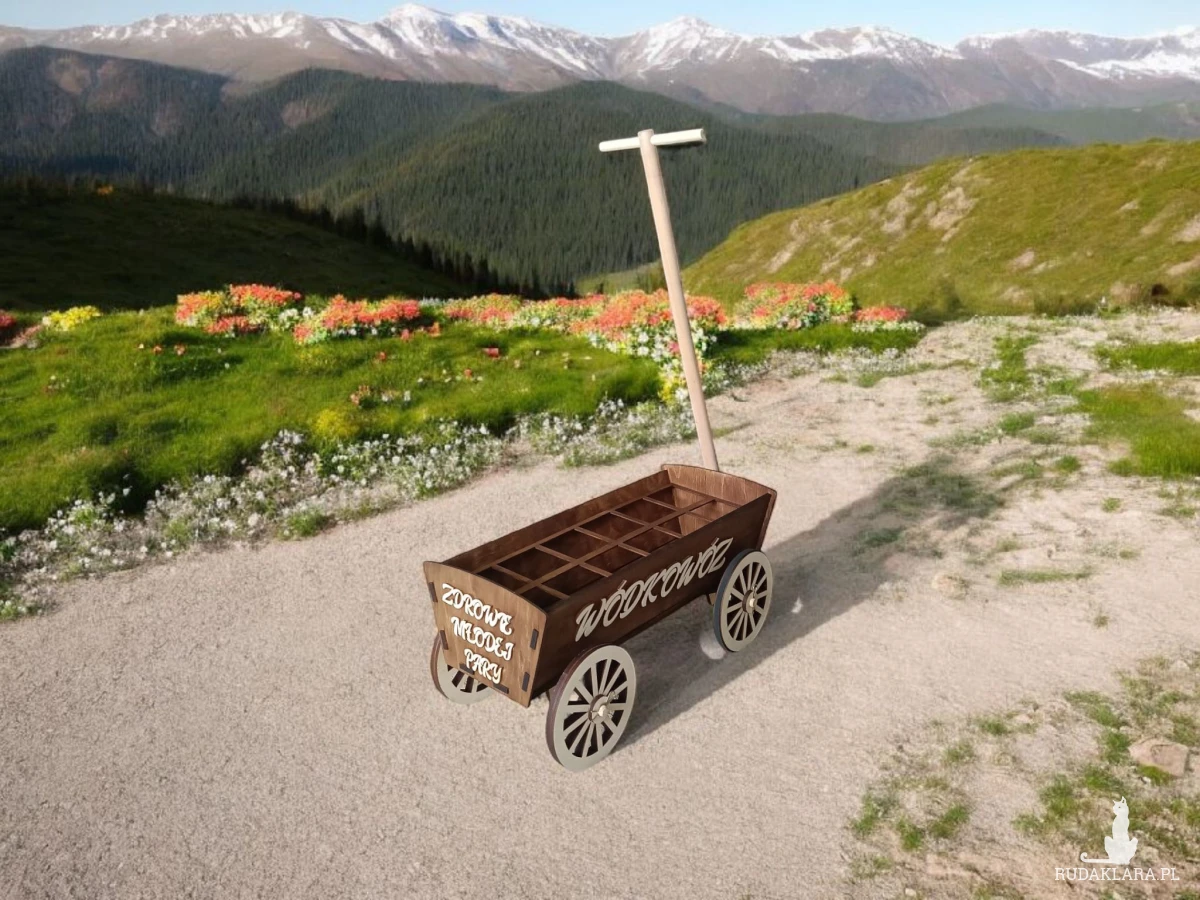 Wódkowóz posiada dyszel, który może ciągnąć zarówno niska jak i wysoka osoba. Wódkowóz wykonany jest w całości z drewna.