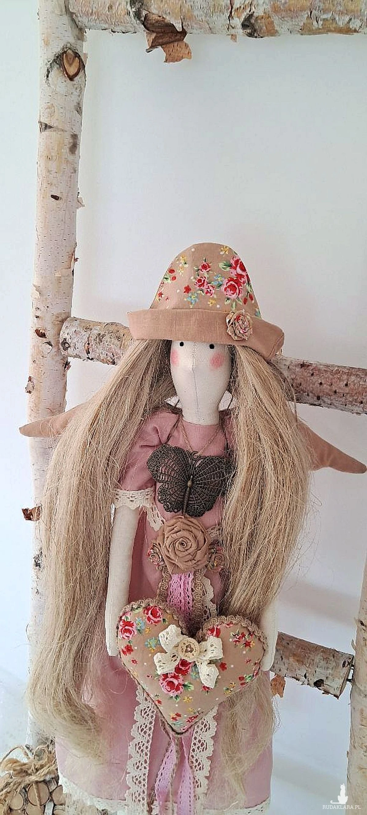 materiałowe również wykonane przeze mnie. W rączce trzyma serduszko