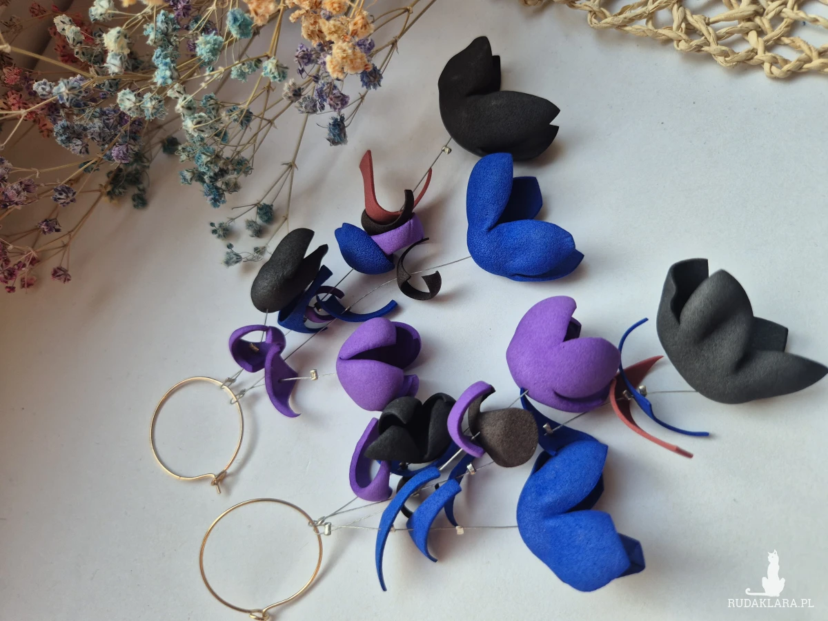 Kolczyki w granatach kwiaty bardzo spektakularne niezwykle widoczne z serii tej biżuterii która zmienia twój strój jednym detalem polecam rękodzieło