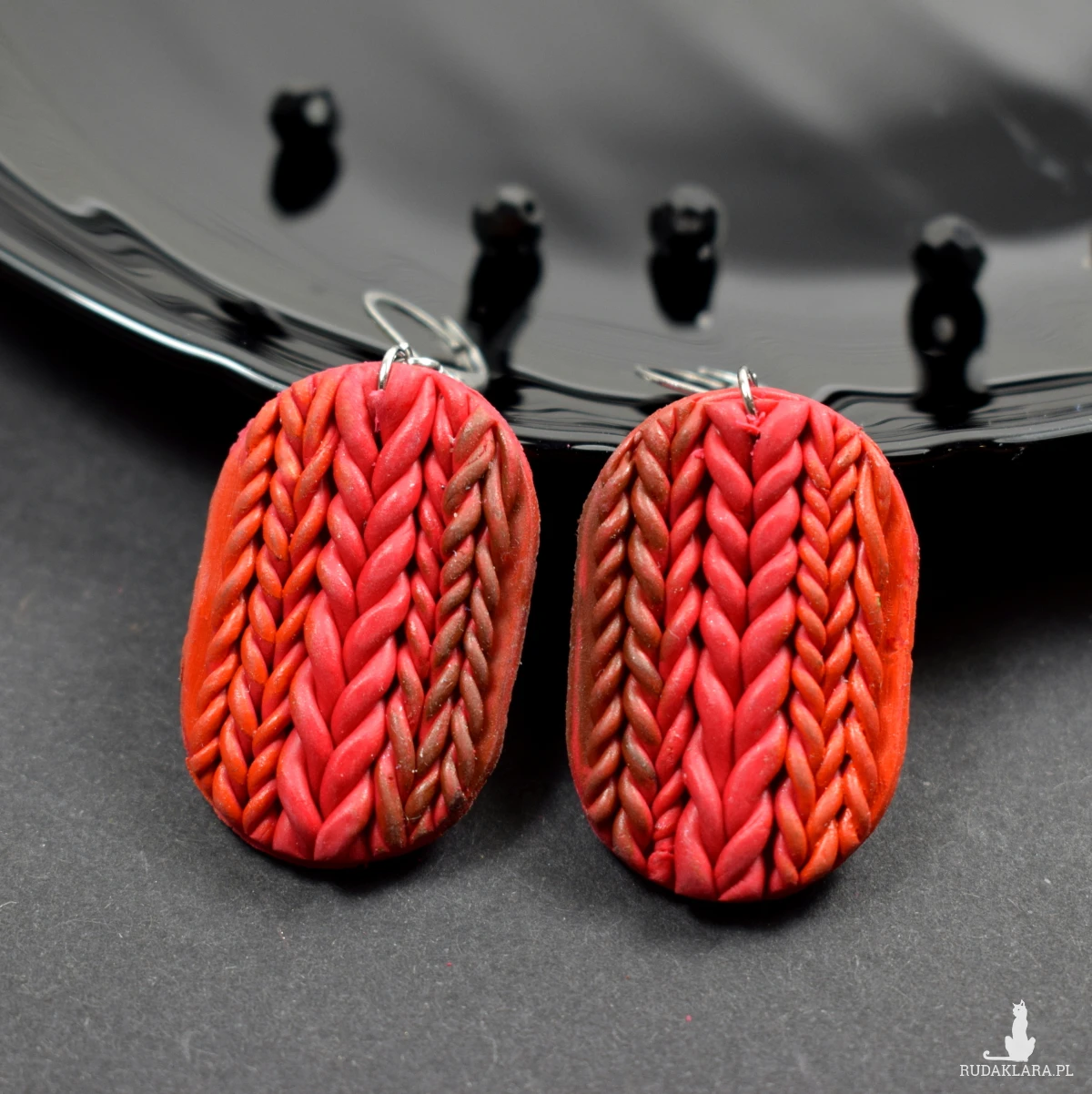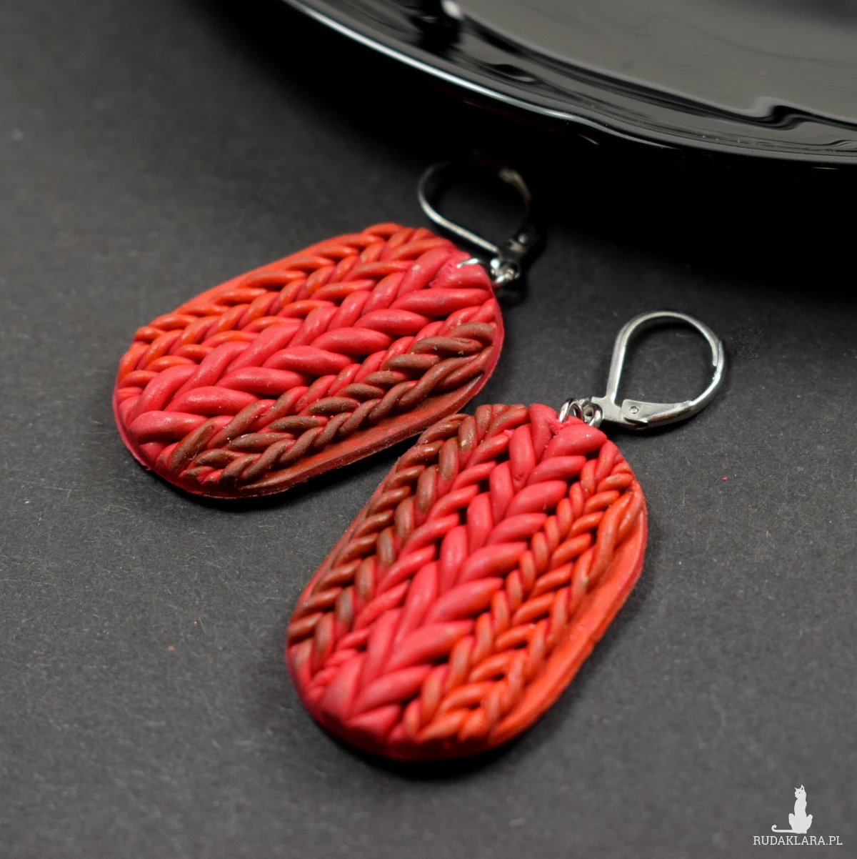 Oryginalne kolczyki w odcieniach czerwieni i bordo. Ich centralny