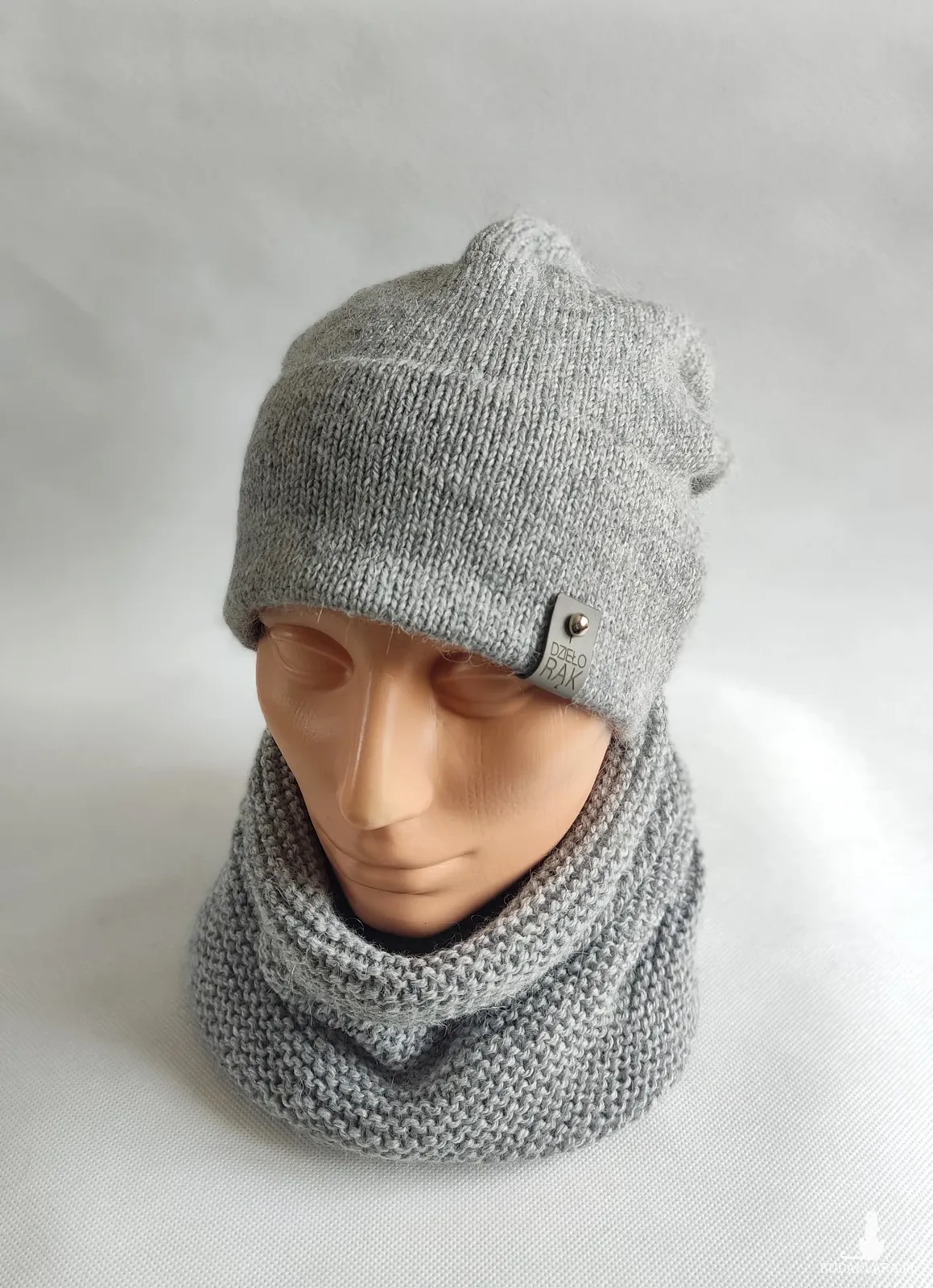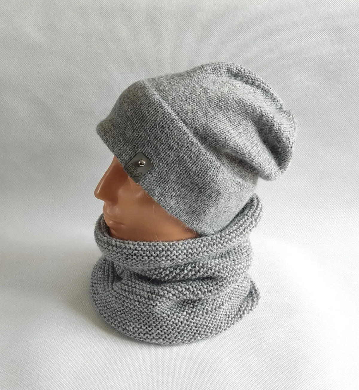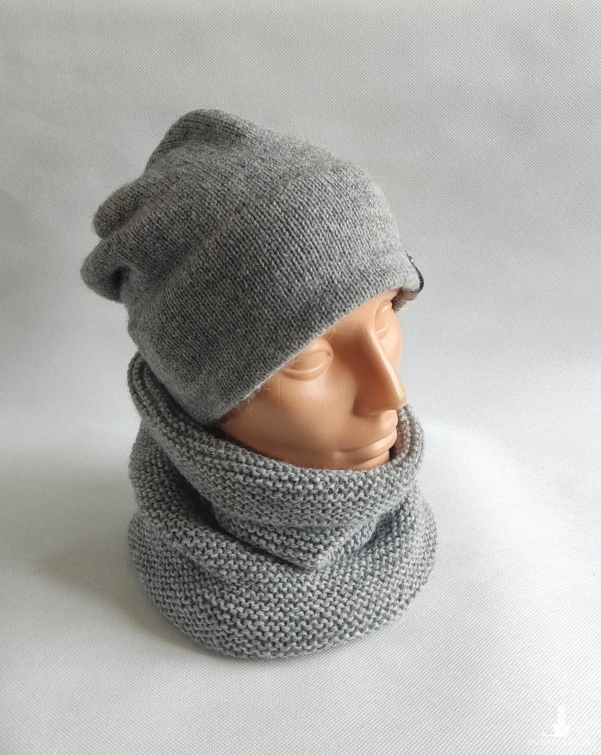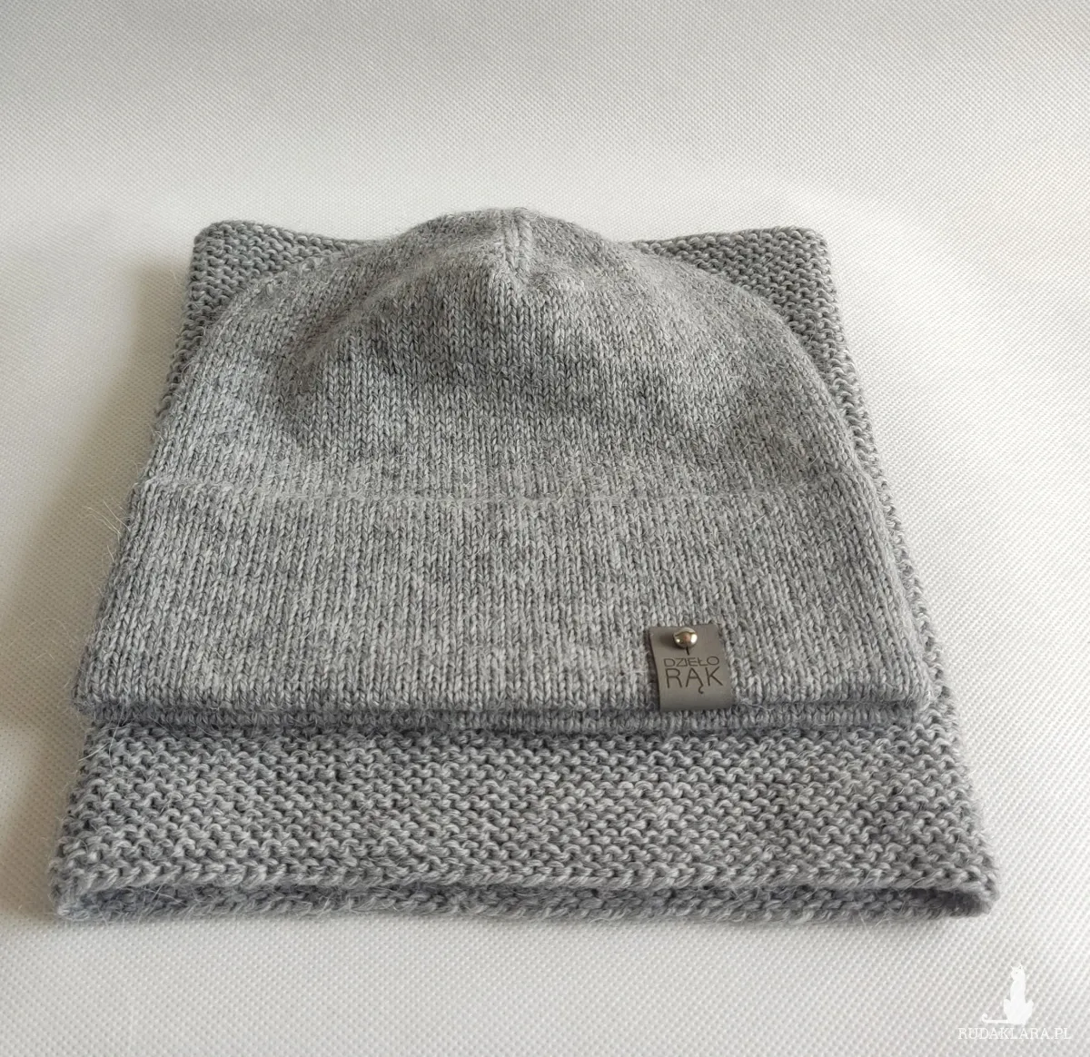 Komplet: czapka + komin, ręcznie robiony na drutach.