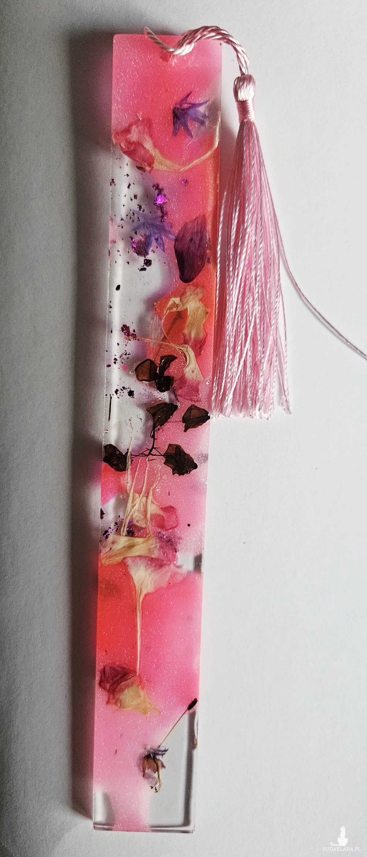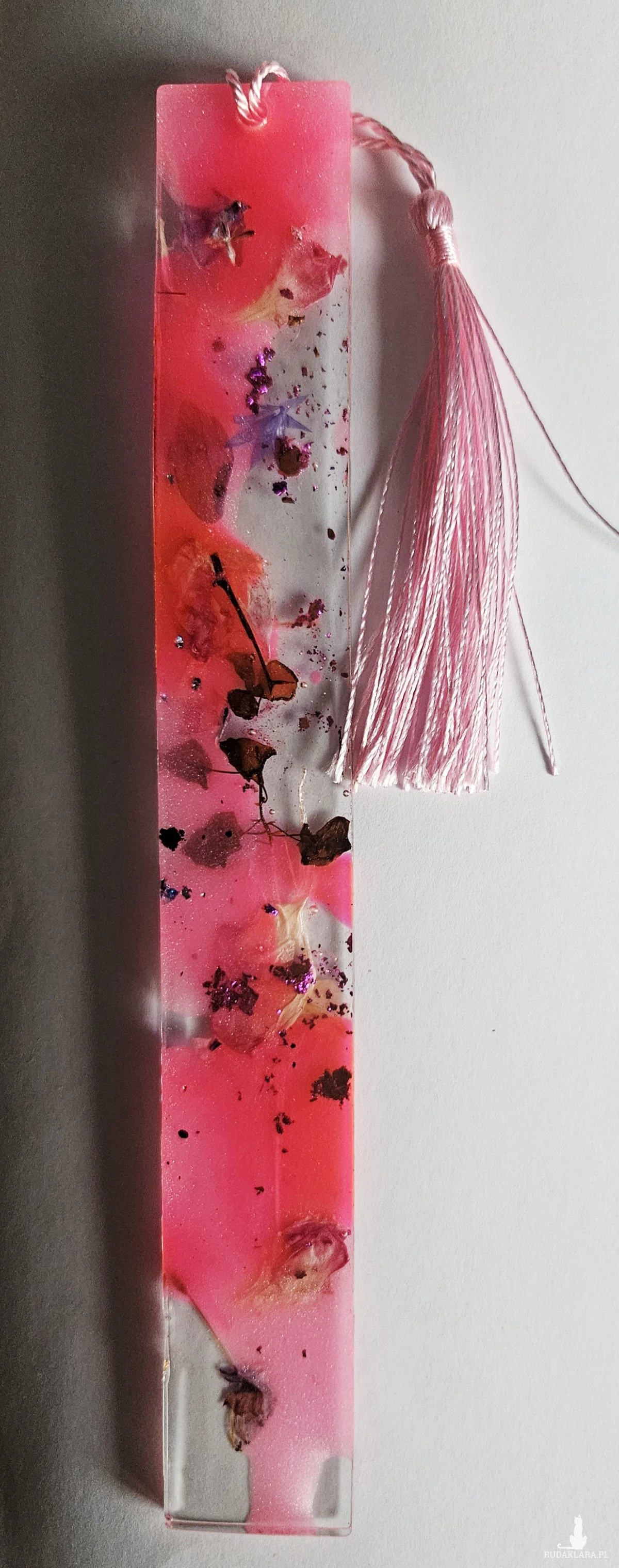Ta unikalna zakładka do książki to idealny dodatek dla miłośników literatury i estetyki. Wykonana z wysokiej jakości żywicy epoksydowej, zakładka zawiera pięknie zatopione, naturalne kwiaty, które zachwycają kolorami i detalami. Każdy egzemplarz jest niepowtarzalny, dzięki czemu masz pewność, że Twoja zakładka wyróżnia się spośród innych.