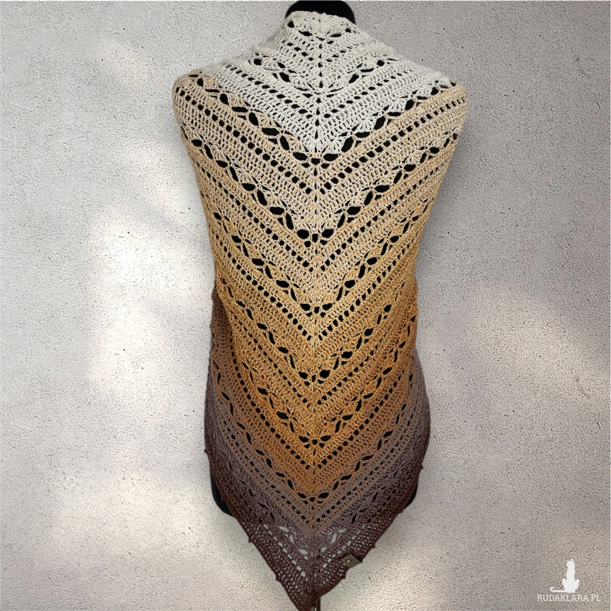 Piękna cieniowana chusta zrobiona ręcznie na szydełku.
