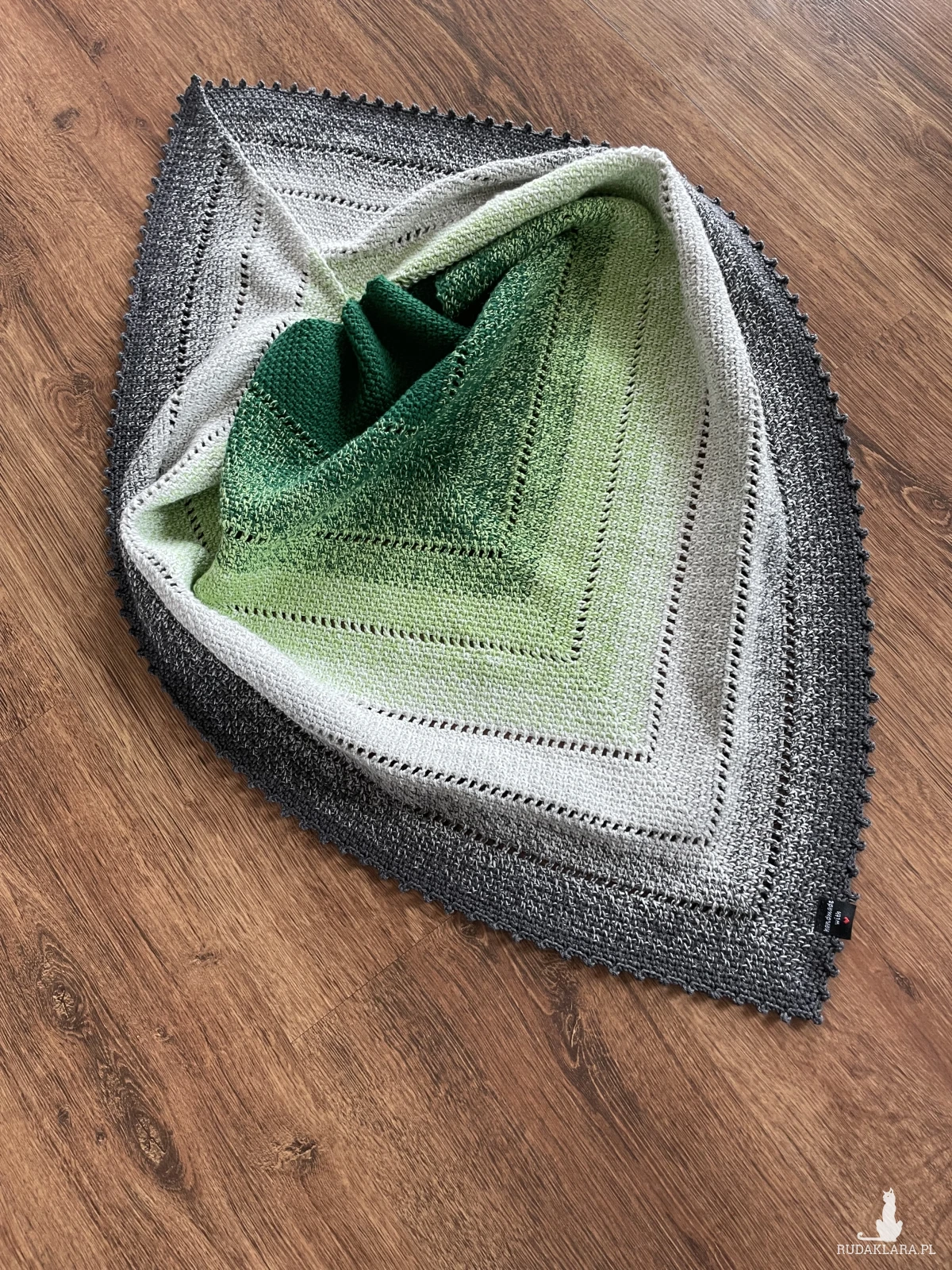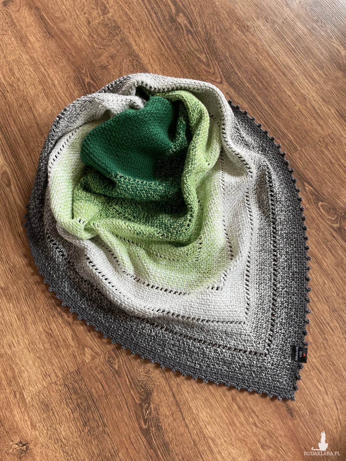 Piękna cieniowana chusta mech wykonana ręcznie na szydełku.