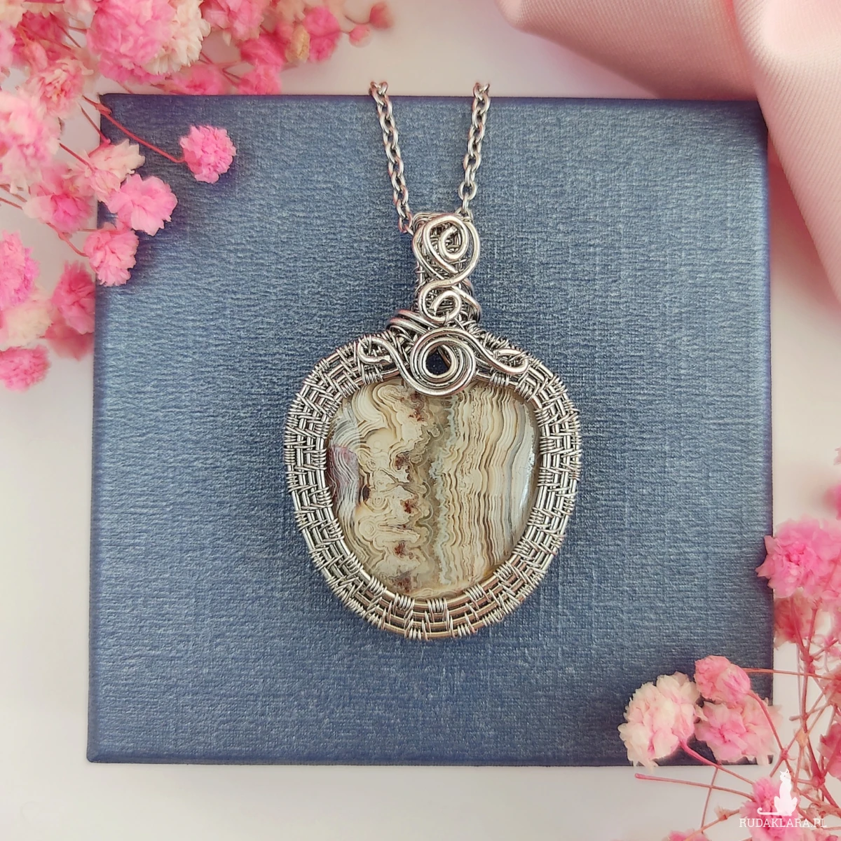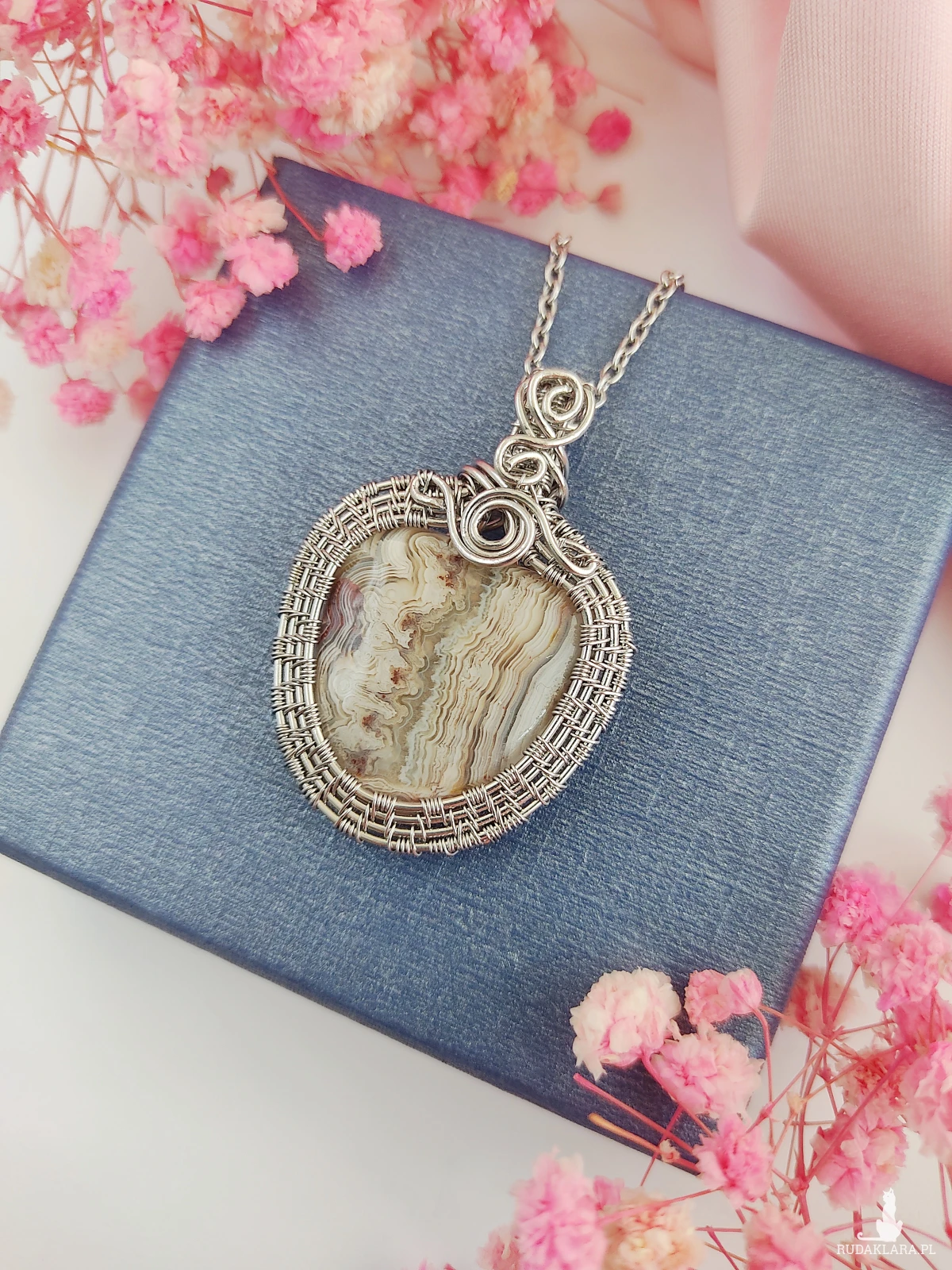 Naszyjnik z agatem crazy lace wykonany metodą wire wrapping ze stali chirurgicznej to niezwykły dodatek, który łączy w sobie kunszt rękodzieła, trwałość materiału i magię naturalnego kamienia. Ten wyjątkowy naszyjnik przyciąga uwagę oryginalnym wzorem agatu crazy lace – minerału znanego z niezwykłych, falistych linii i kontrastowych barw. Każdy egzemplarz wyróżnia się unikalnym rysunkiem, dzięki czemu biżuteria jest jedyna w swoim rodzaju i niepowtarzalna.