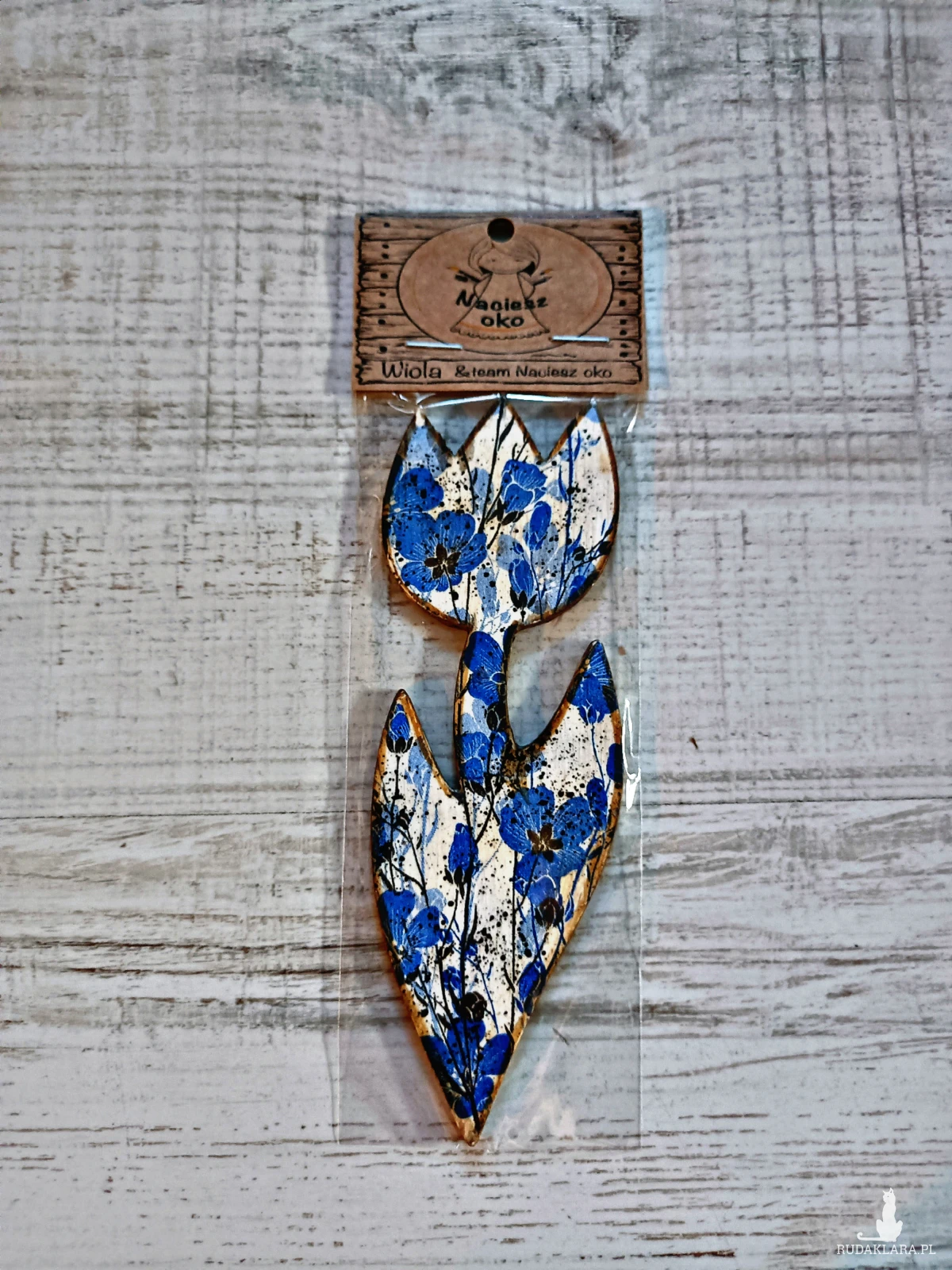 Drewniana zakładka do książki, zdobiona dwustronnie techniką decoupage.